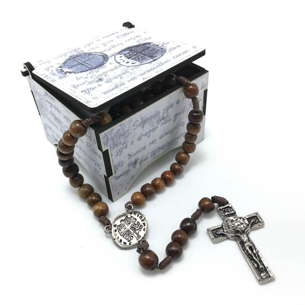 Terço Medalha Duas Cruzes com Caixinha Personalizada