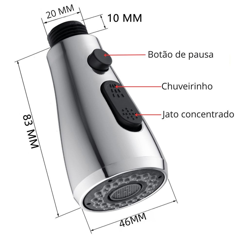 Cabeça Bico Torneira Gourmet Cozinha Chuveirinho 3 Funções