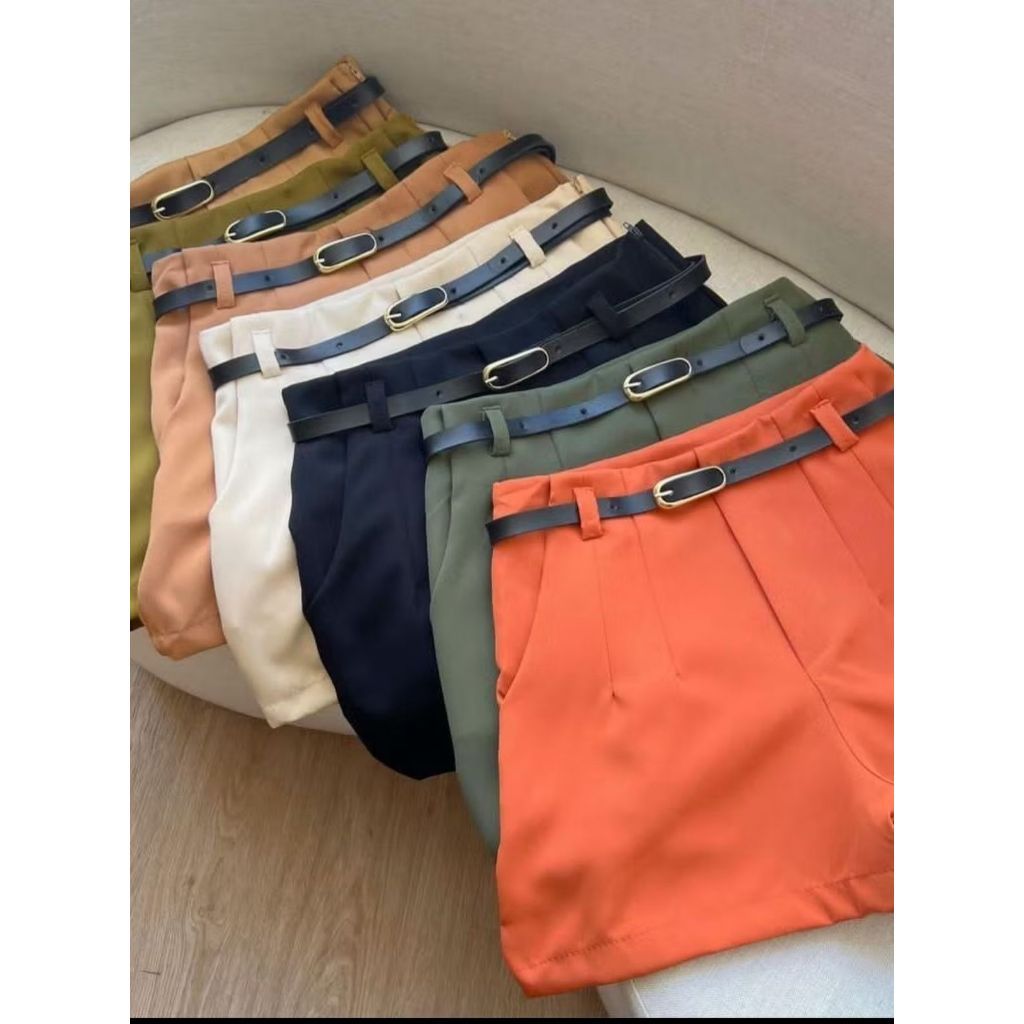 Short Alfaiataria Feminino Cintura Alta com cinto Bolso e Zíper Lateral Social