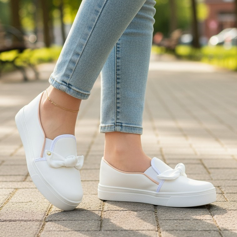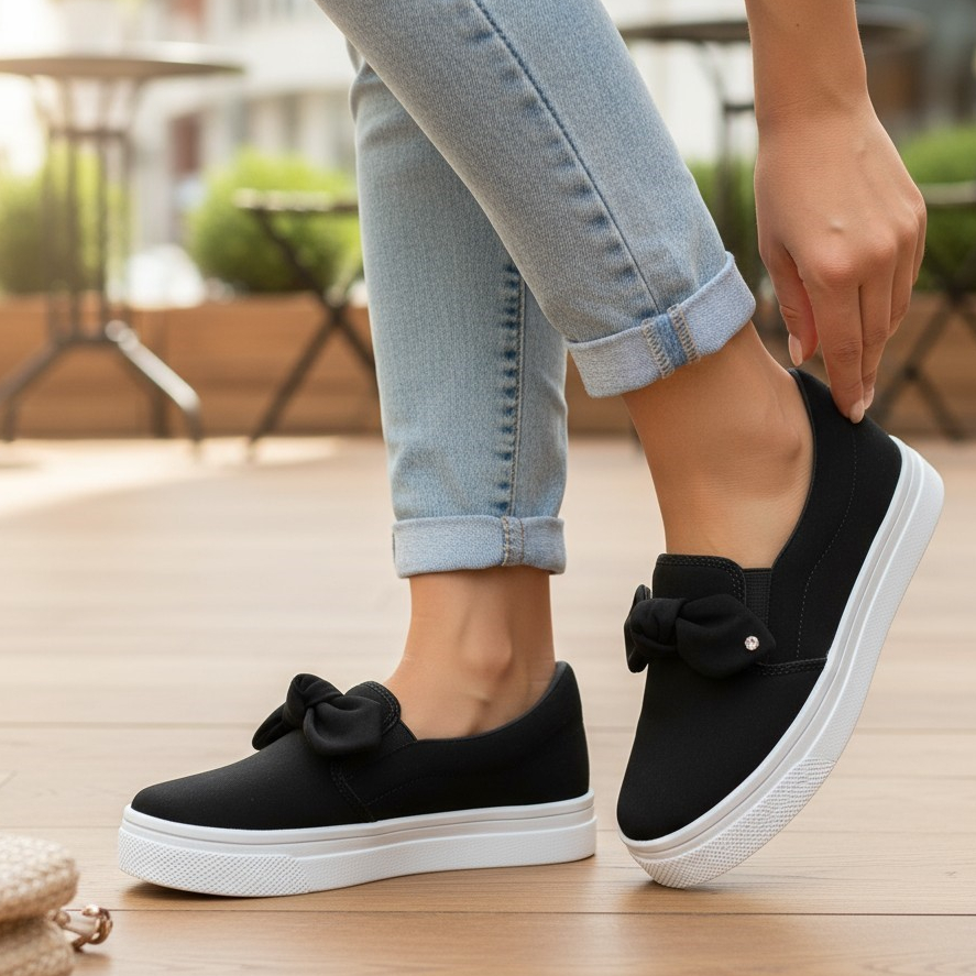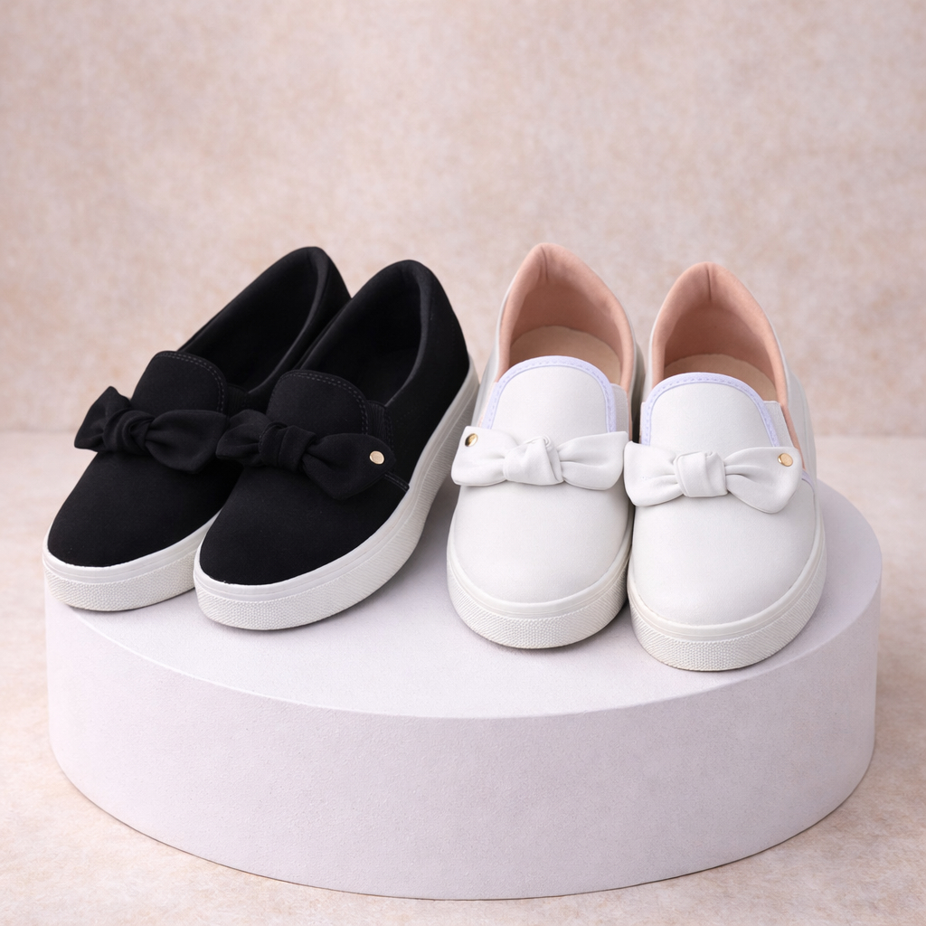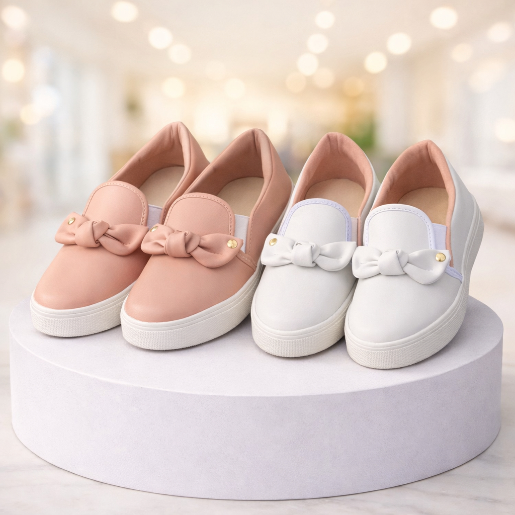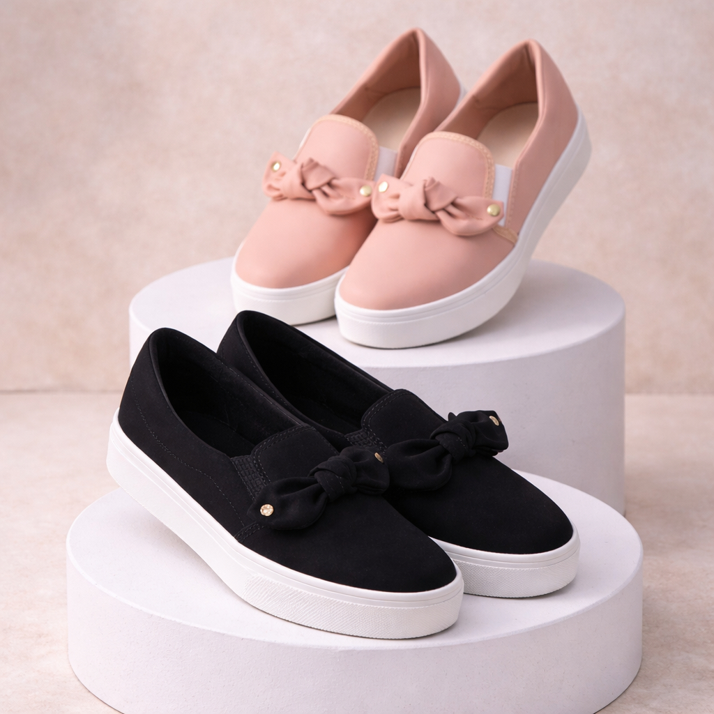 Kit 2 Pares Tênis Feminino Com Laço Slip On Casual Confortável Sapatilha Moderno Solado Antiderrapante