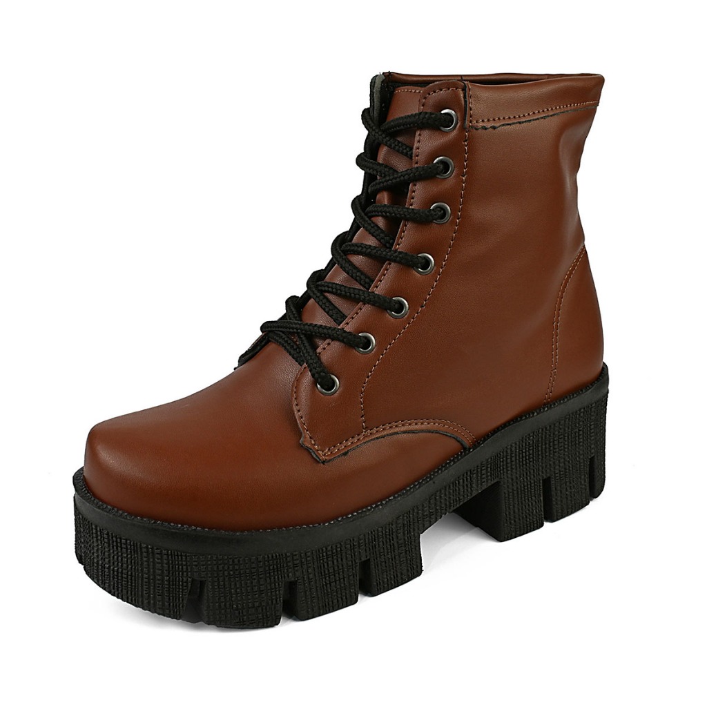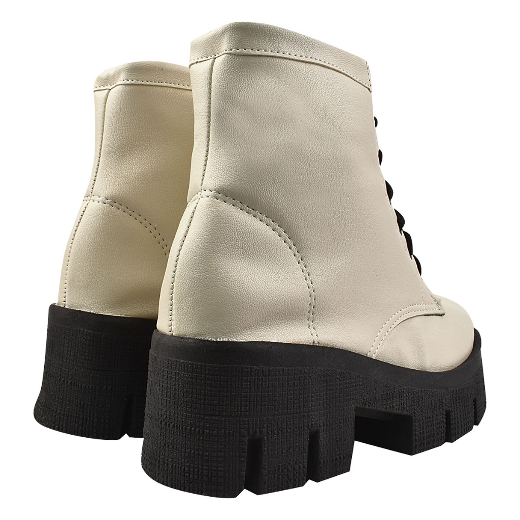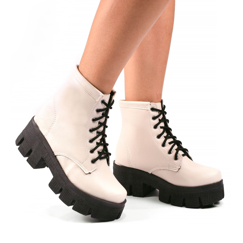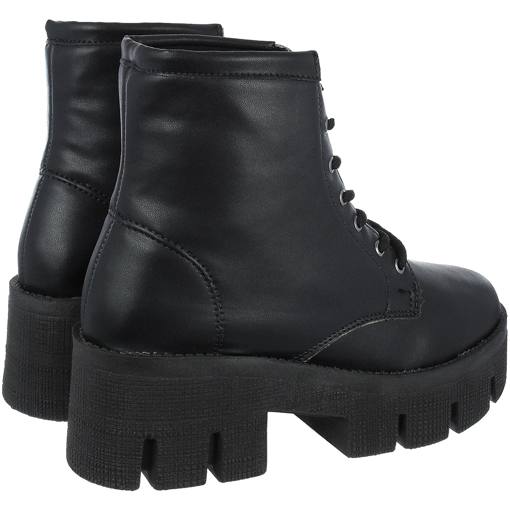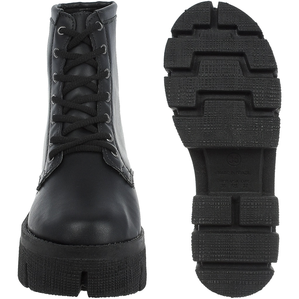 Bota Coturno Feminino Plataforma Tratorado Novo Donatella Shoes Cano Medio Militar Preto com Cadarço Botinha