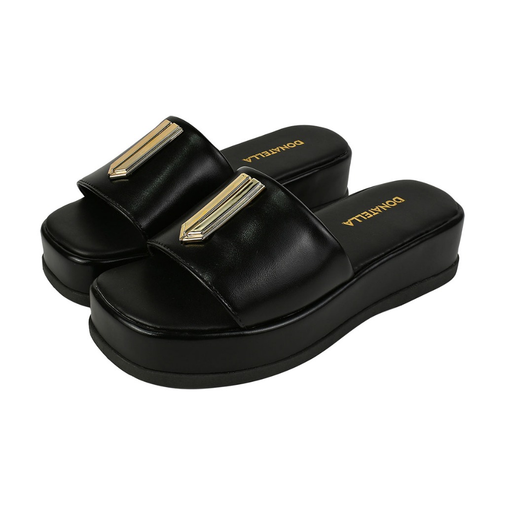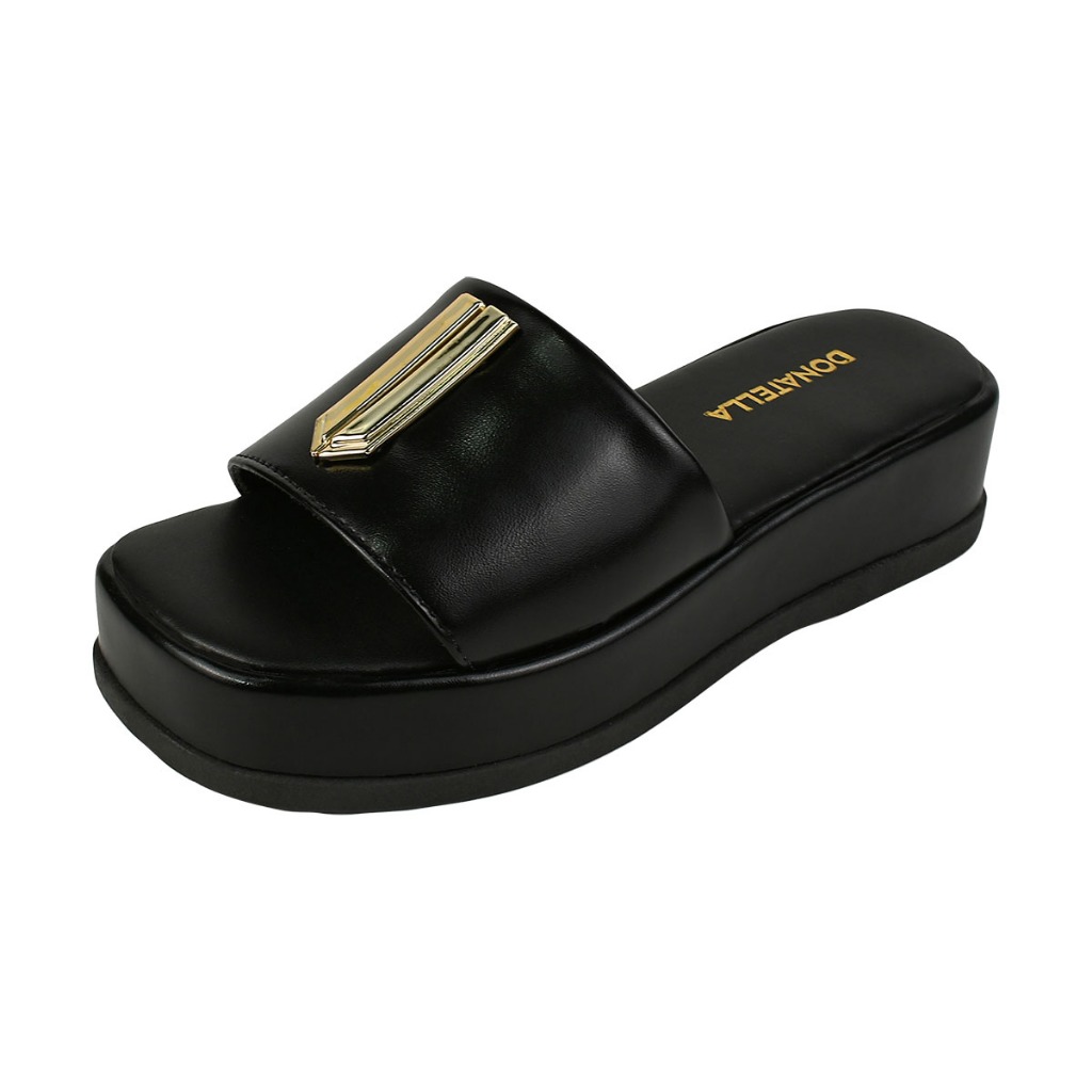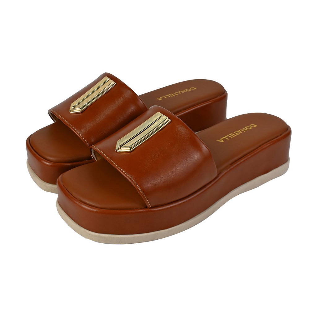 Sandália Anabela Plataforma Tamanco Enfeite Dourado Napa Santorine Confort Leve Macia Novidade
