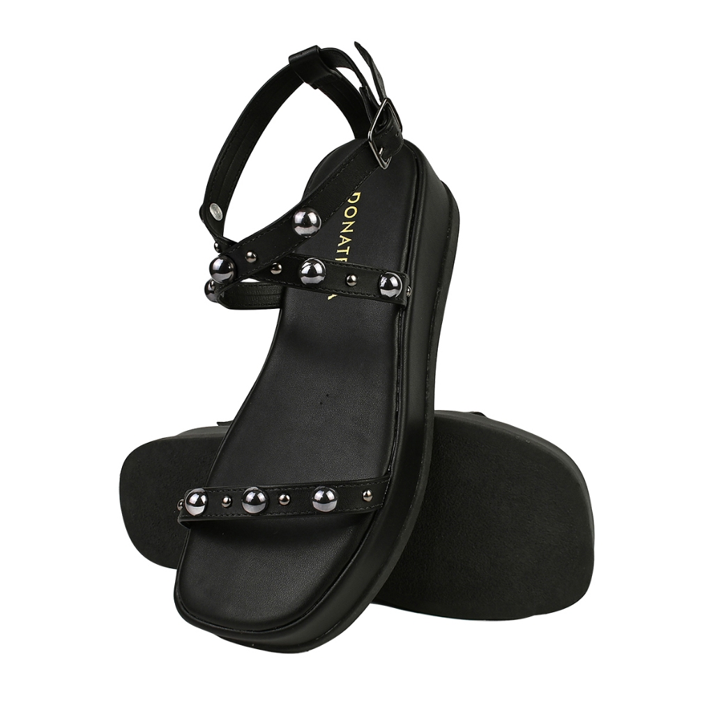 Sandália Feminina Donatella Shoes Casual Confortável Fivela Flatform Tamanco Plataforma Com Aplicação Dourada