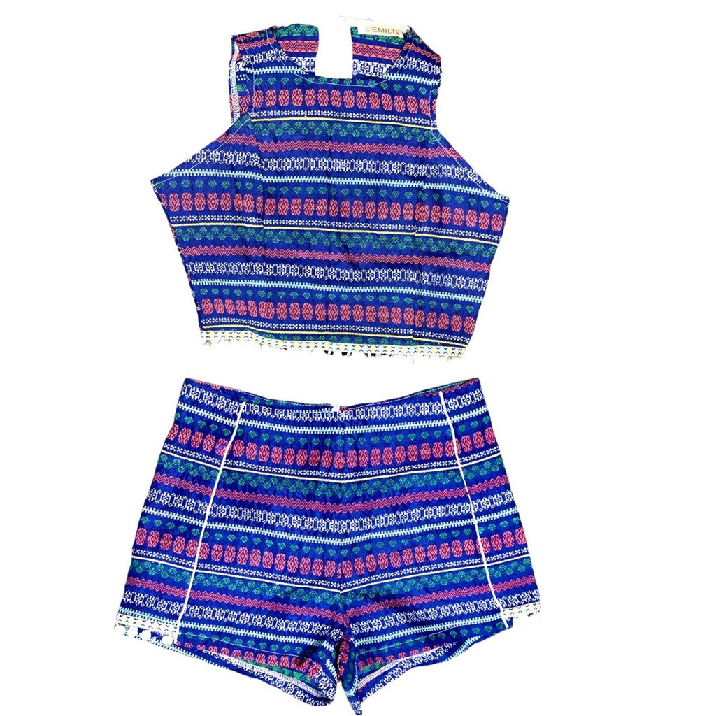 Conjunto Praiano Bordado Cropedd Short Elegante Praia Mantra