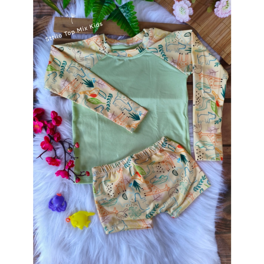 SUNGA bebê/ Infantil boxer + Blusa proteção uv CONJUNTO de banho térmico moda praia menino