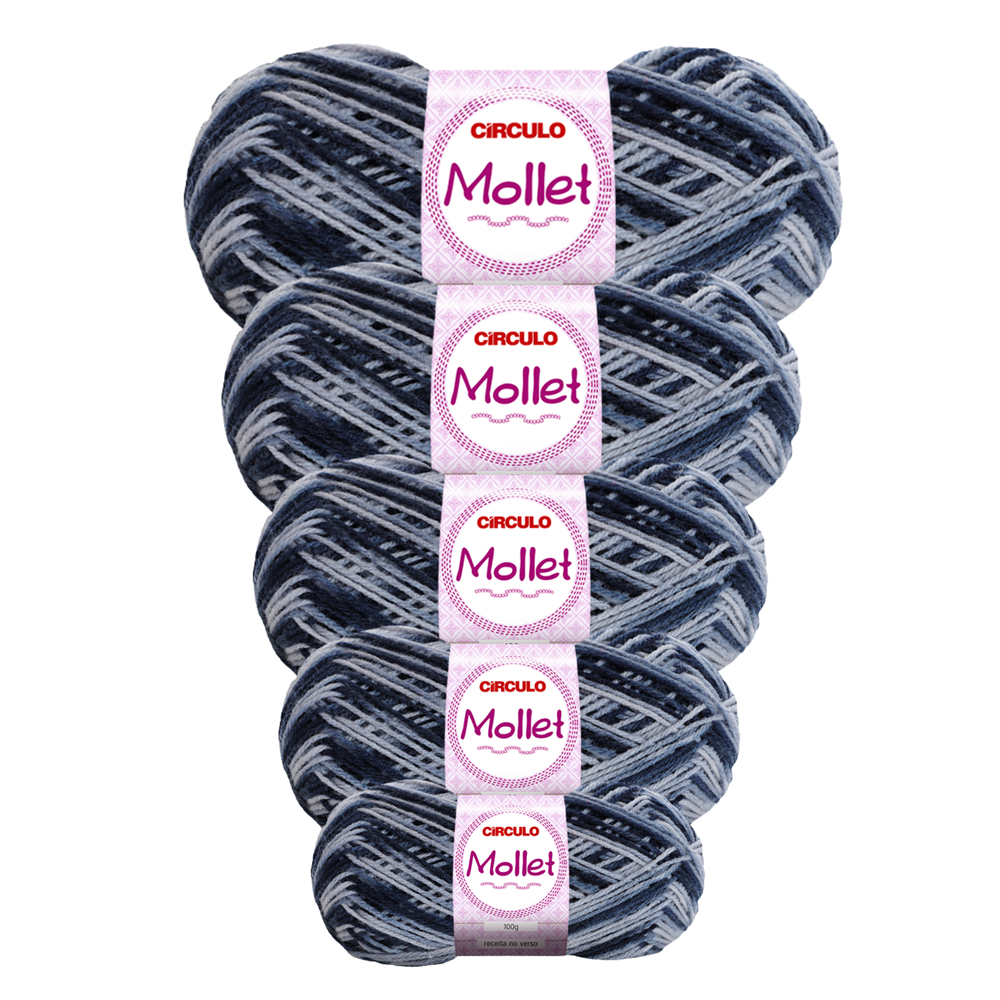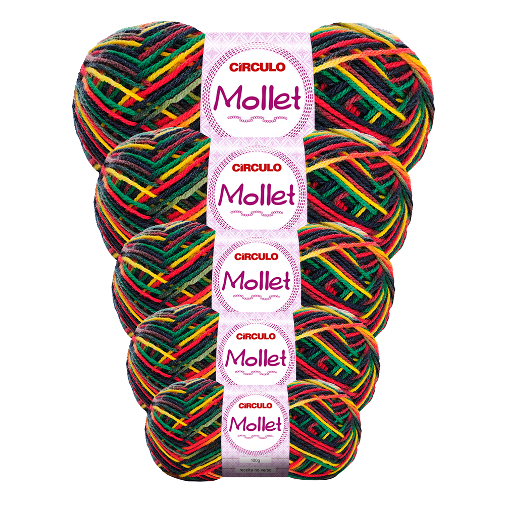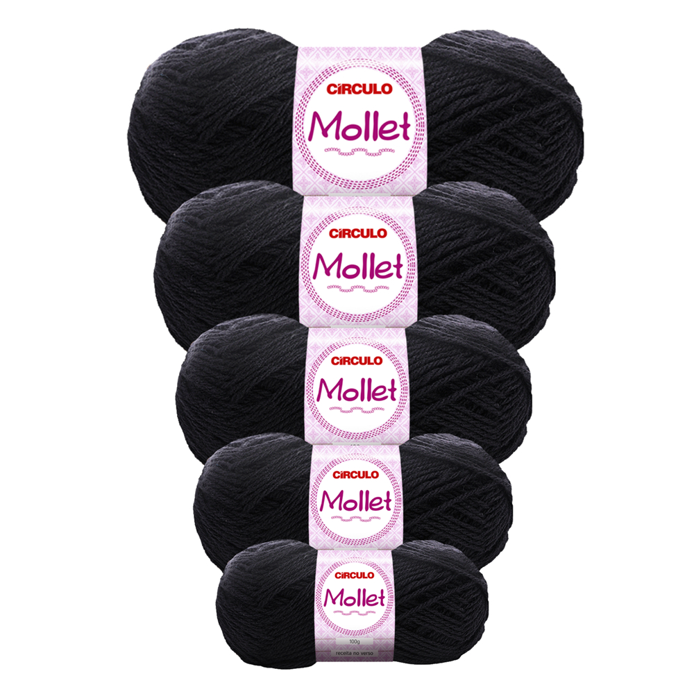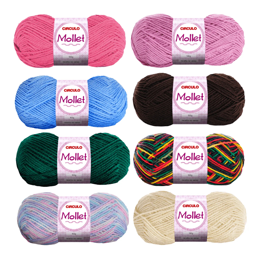 Pacote Kit 5 Novelos Fio Lã Mollet 100g 200m Círculo - Crochê / Tricô