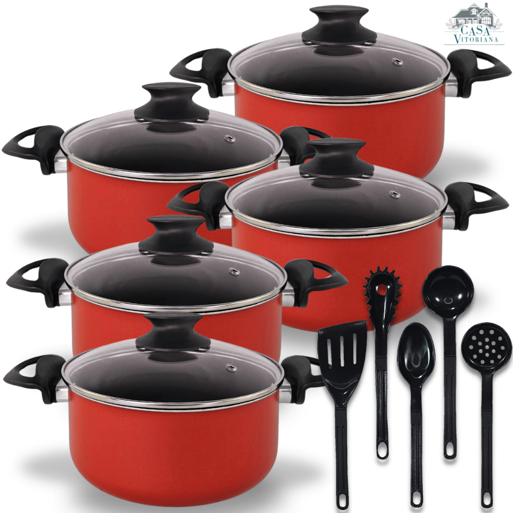 Jogo De Panelas Caçarolas Premium 16 a 24 cm Antiaderente 5 Camadas De Teflon Cor Vermelho