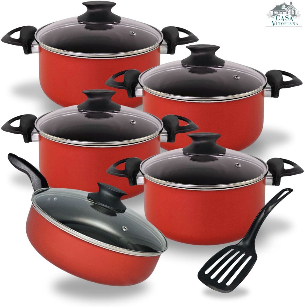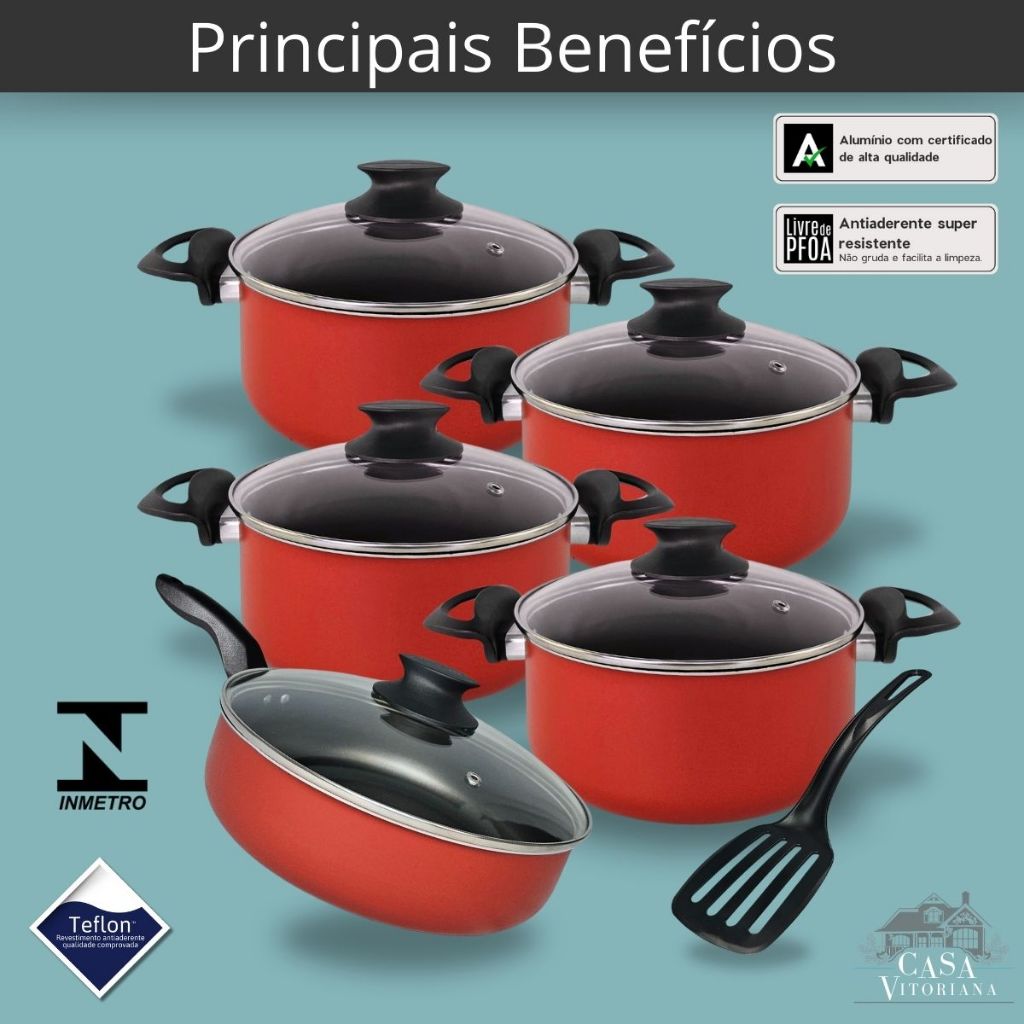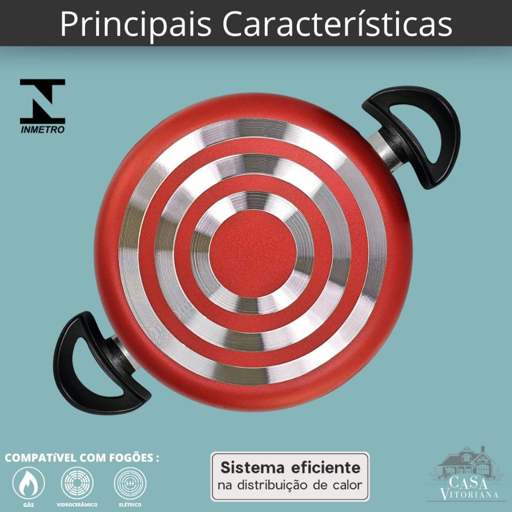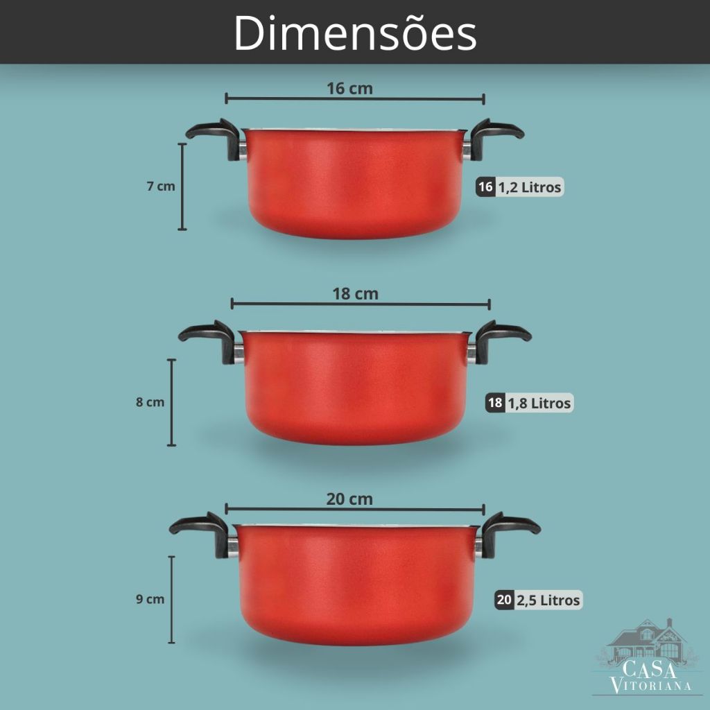 Jogo De Panelas Caçarolas 16 a 22 e Frigideira Alta 24 cm Com 5 Camadas De Antiaderente Teflon Vermelho