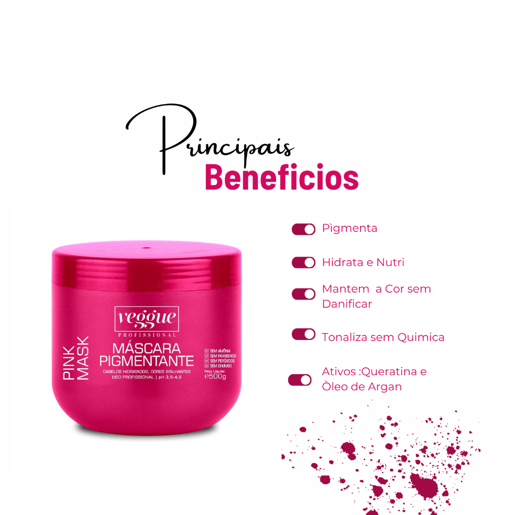 Máscara Matizadora e Tonalizante Rosa Pink Mask Veggue Profissional 500g