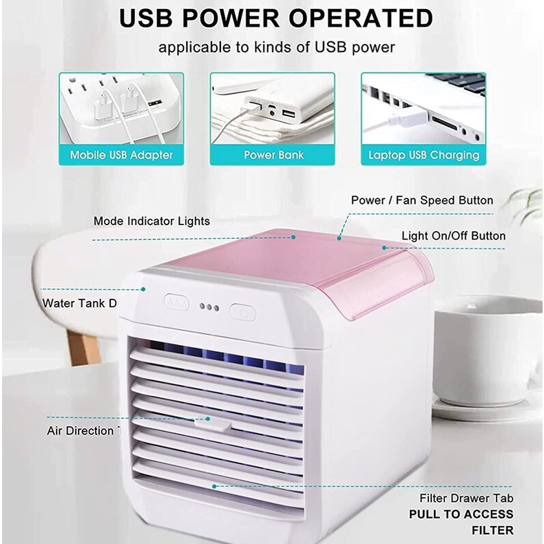 Mini Refrigerador De Mesa Portátil de Ar Com 3 Velocidades Escritório