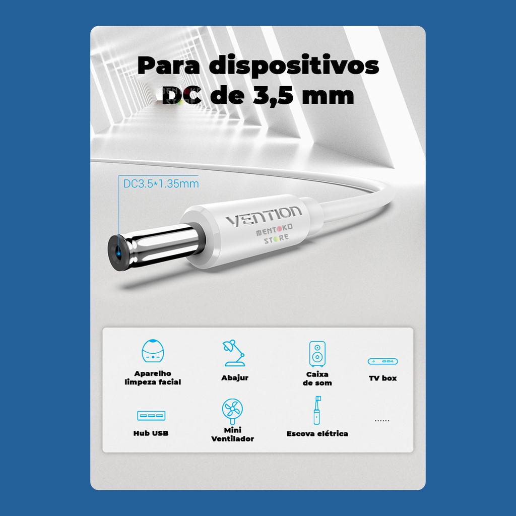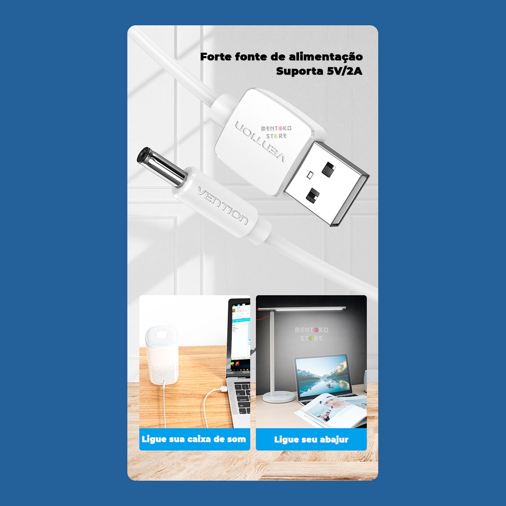 Cabo Energia USB A Para Dc 3,5mm Som Tv Box Fonte 1m Vention