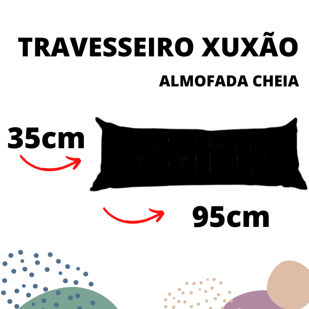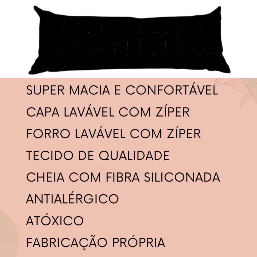 KIT Almofada Grande Encosto De Dormir Cama Sofá Travesseiro de Corpo 02 Peças 35x95 Decoração Preto