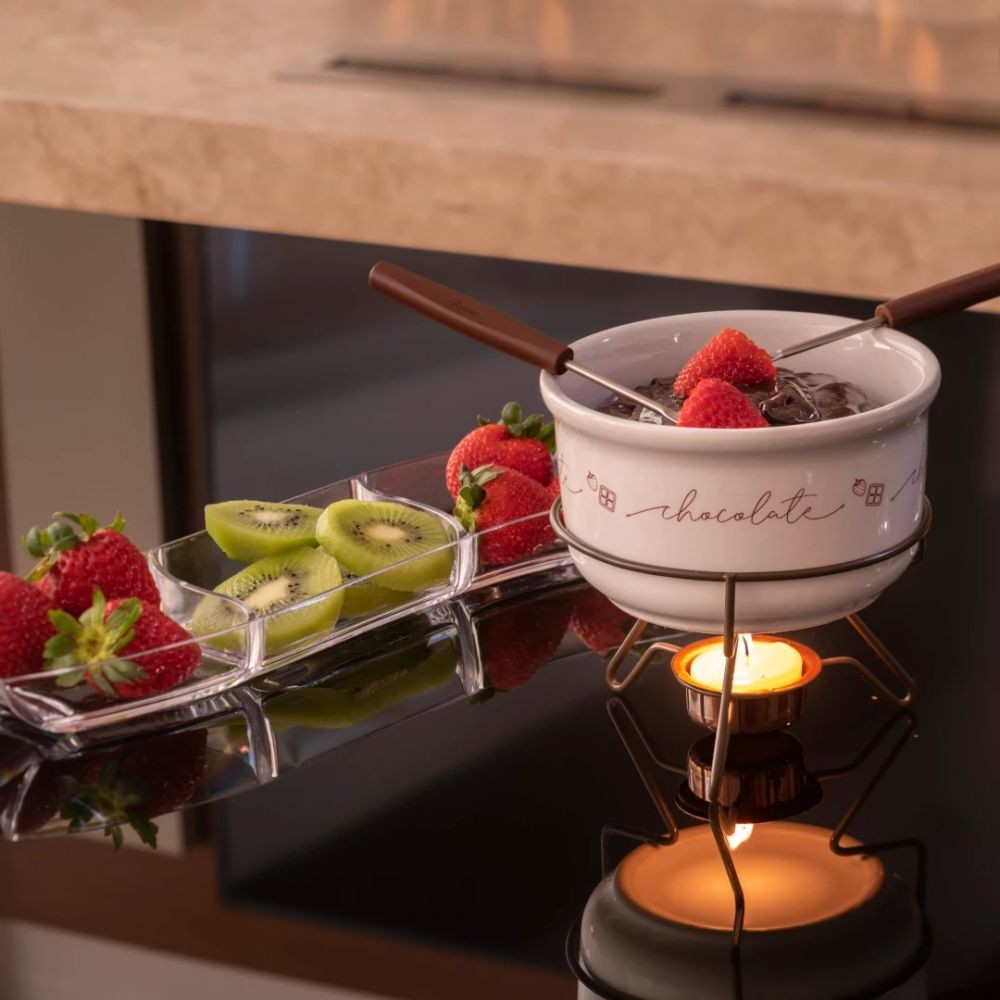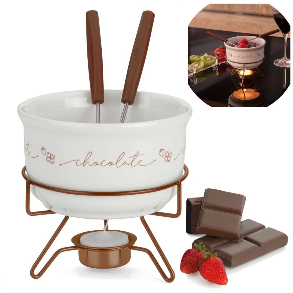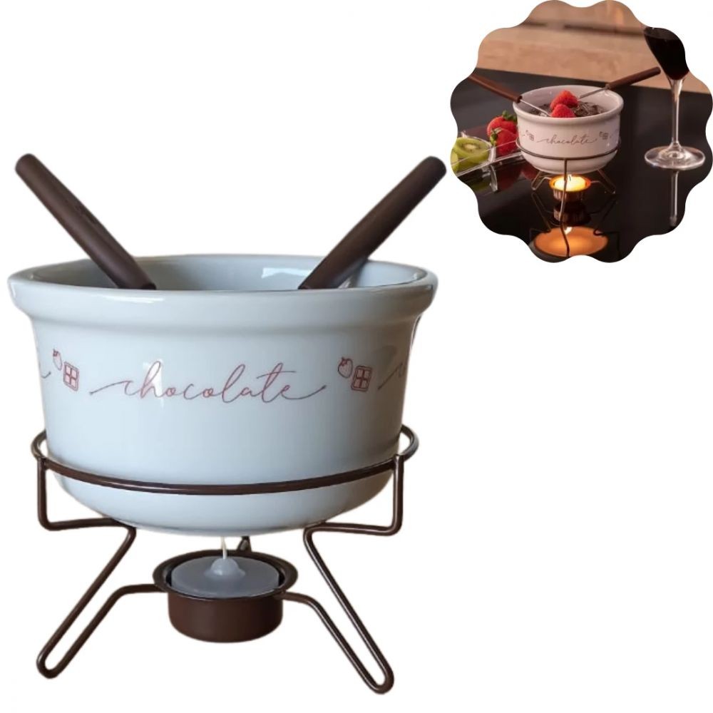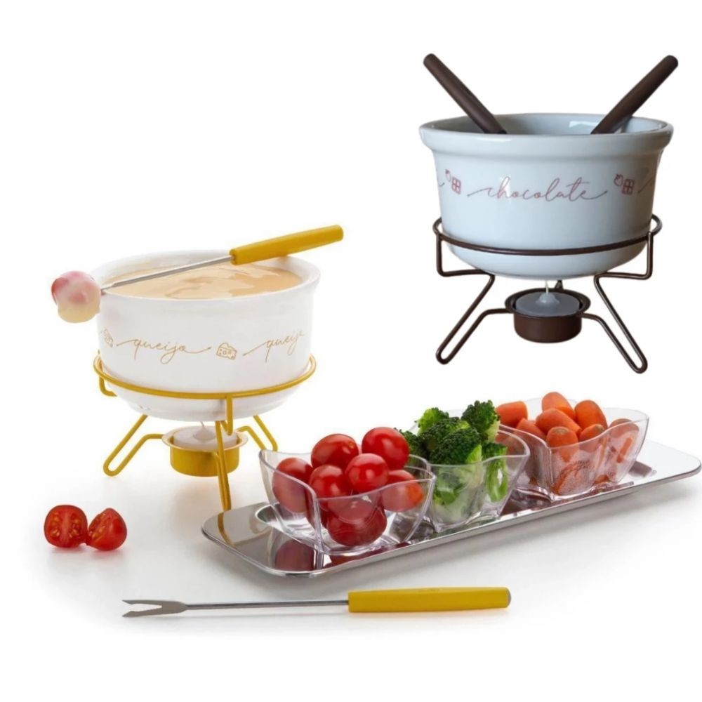 Kit 2 Conjuntos para Fondue, Chocolate e Queijo em Porcelana