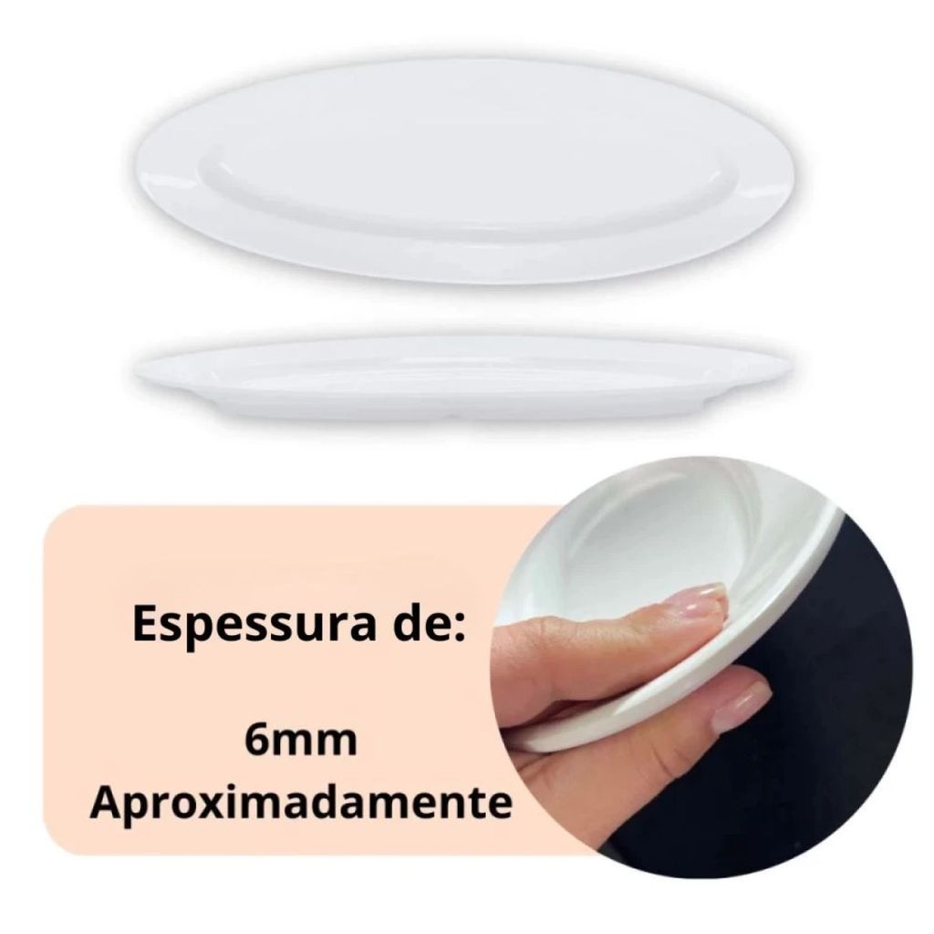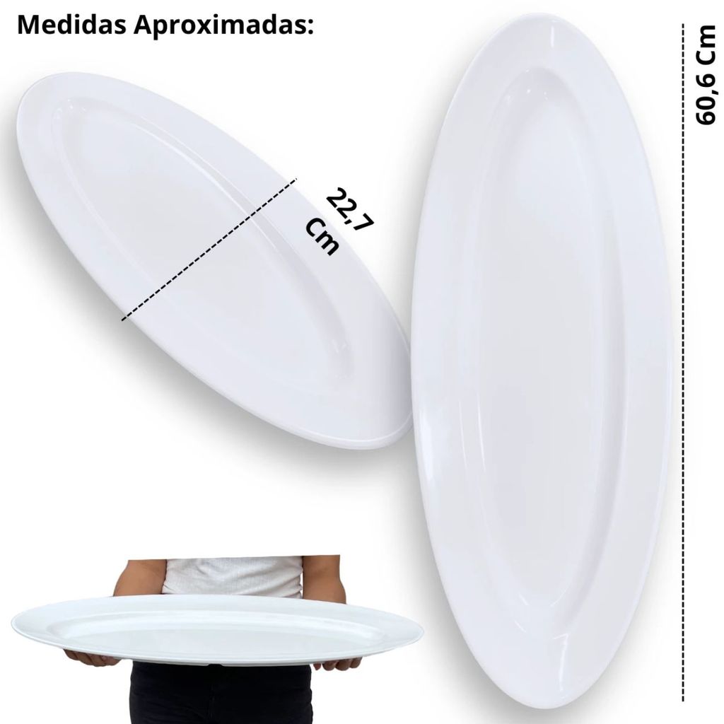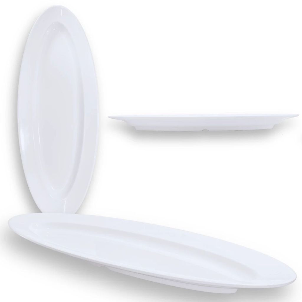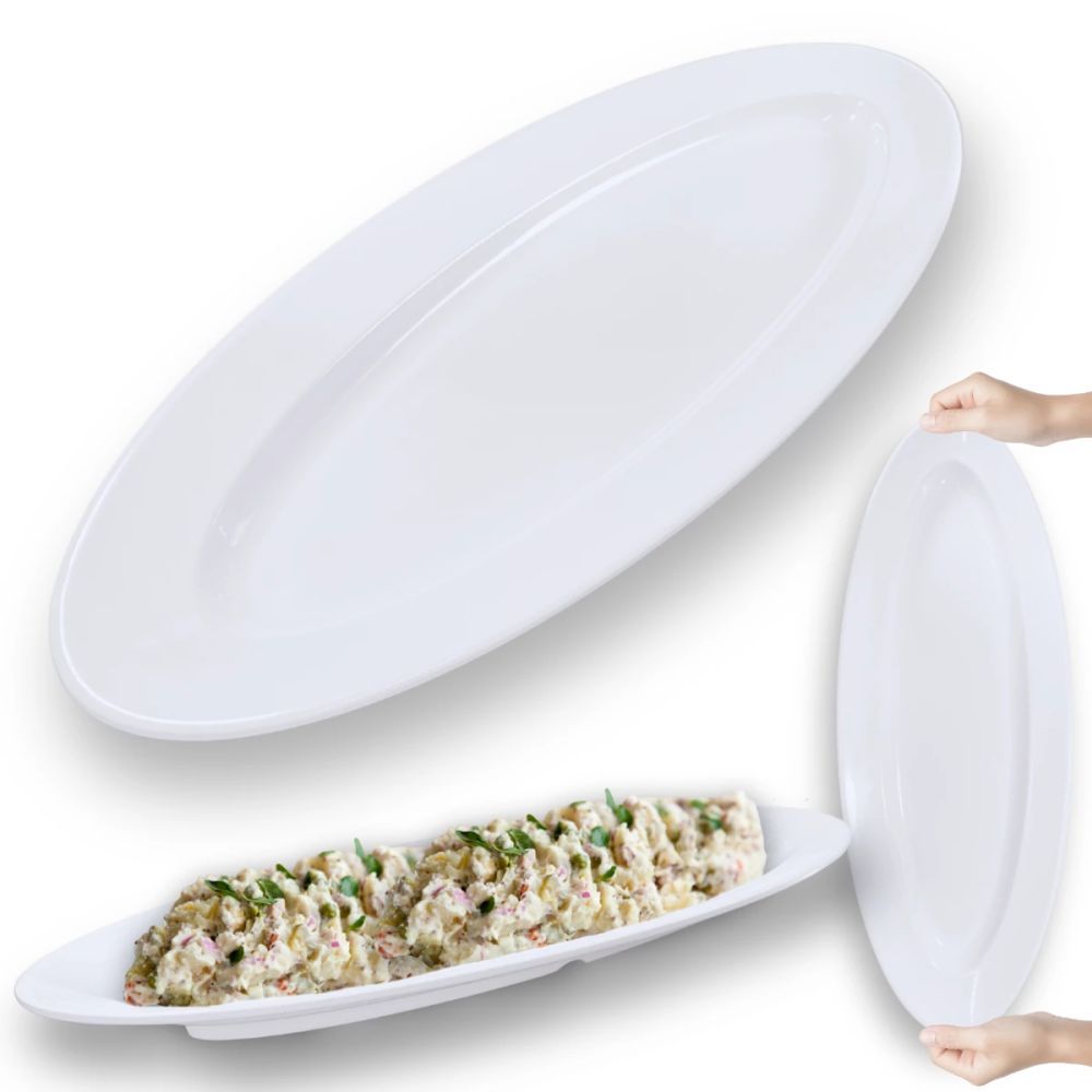 2 Travessas Oval 60 Cm Pratos para Buffet Restaurante Cozinha Melamina Premium Branca Rasa