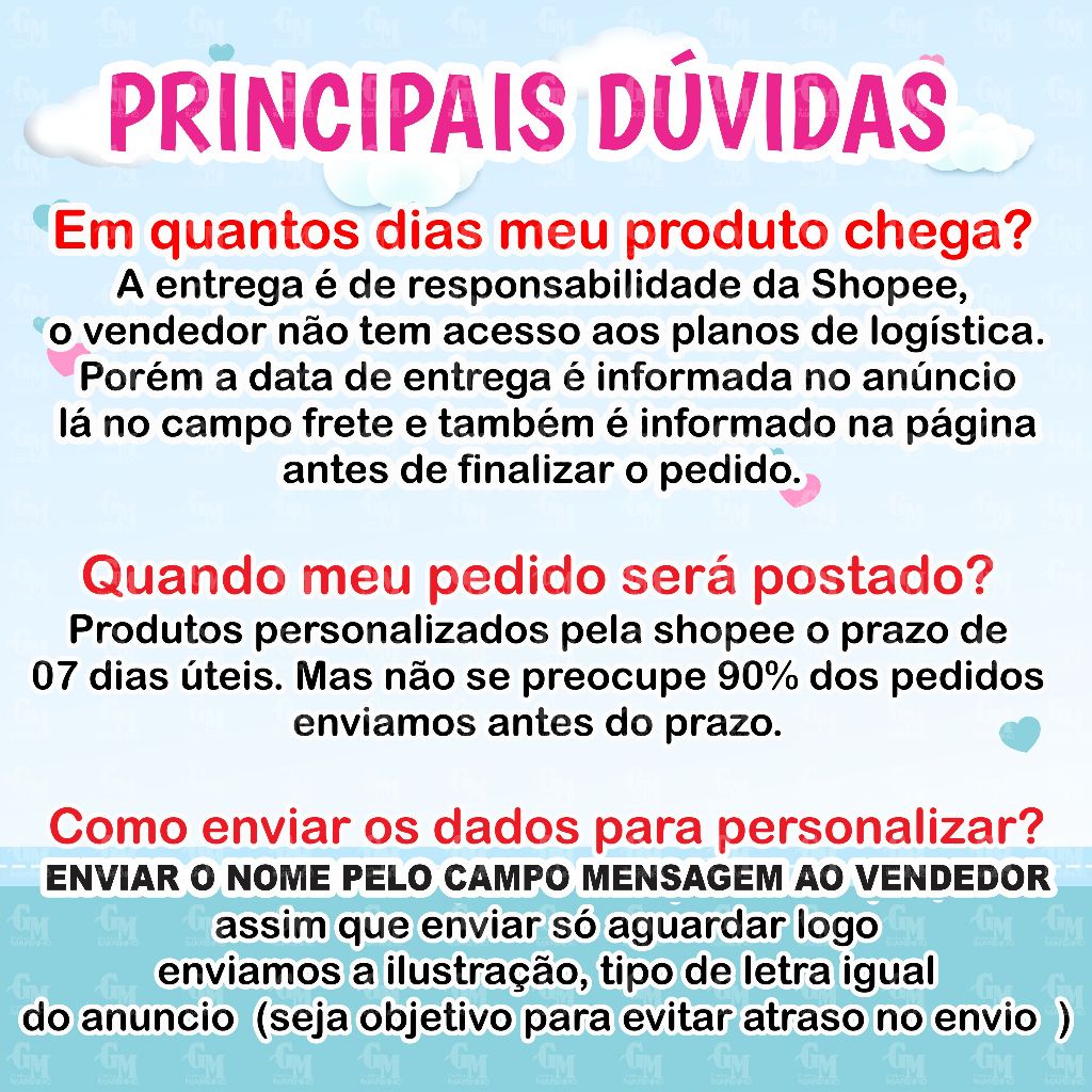 Sob encomenda: envio após 7 dias da compra