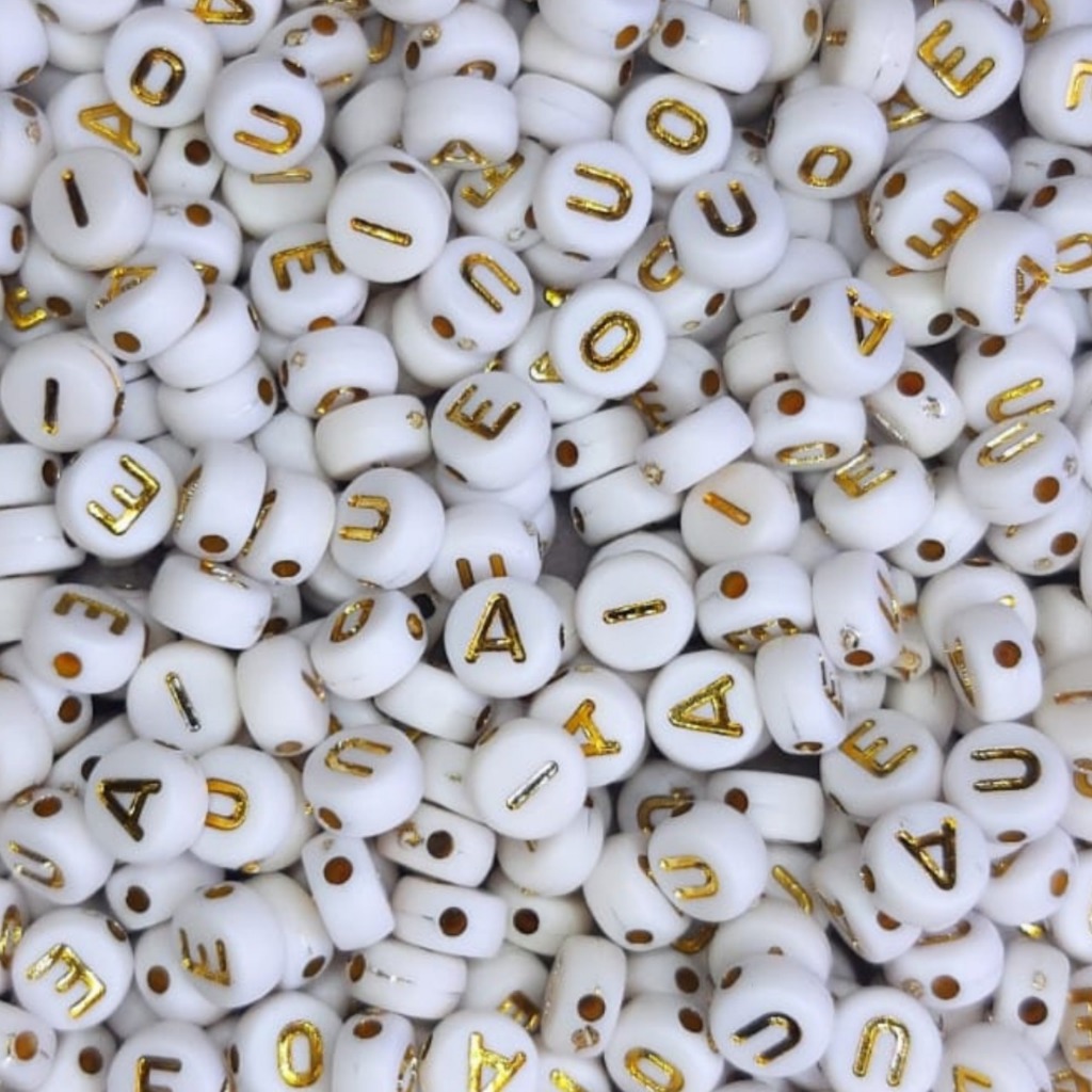 Kit 700 Miçangas com Letras do Alfabeto + L N R + Vogais Bijuteria