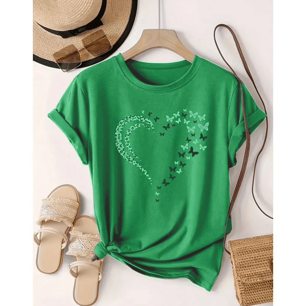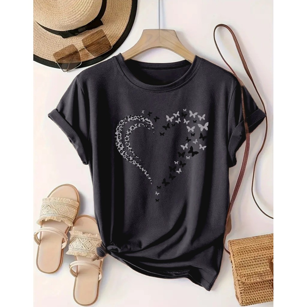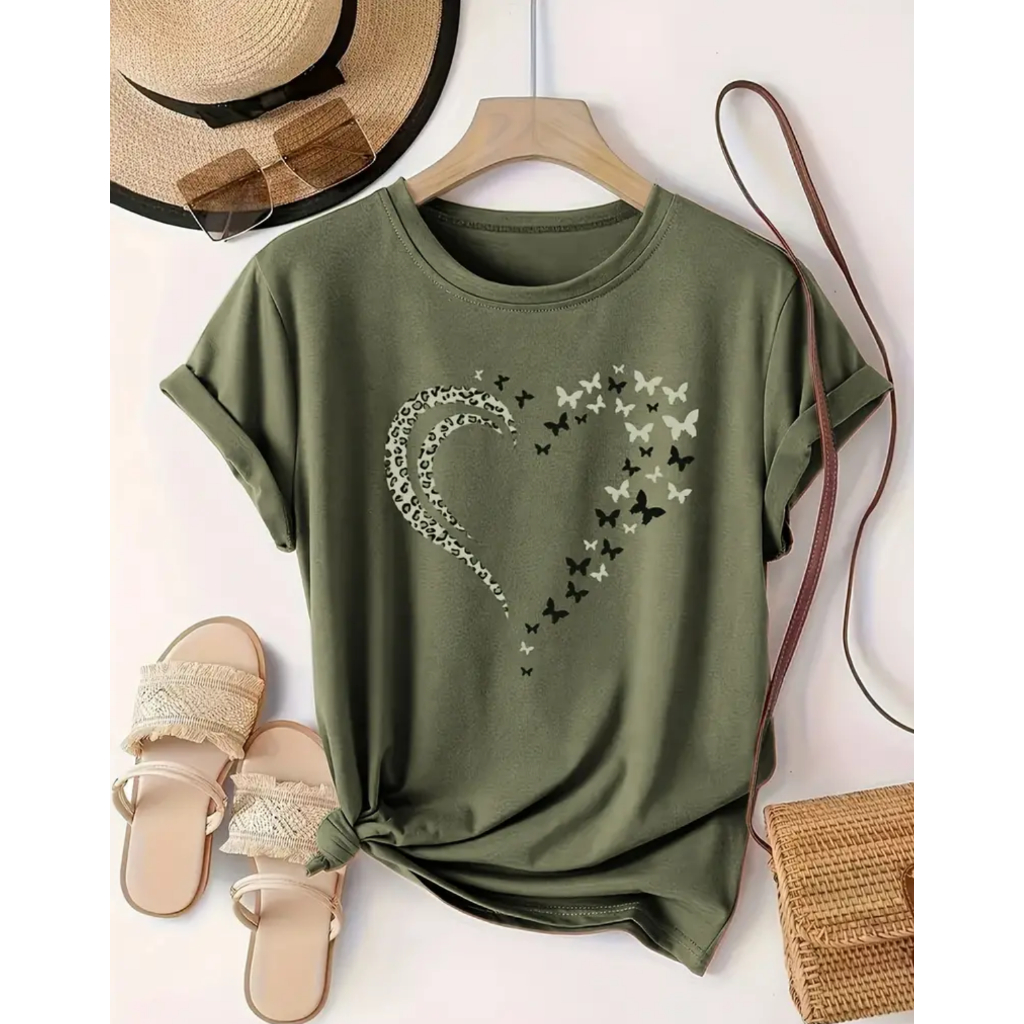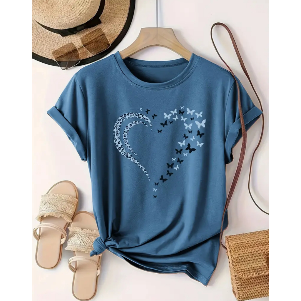 Blusa T-shirt Camiseta Feminina Estampa Coração Borboleta