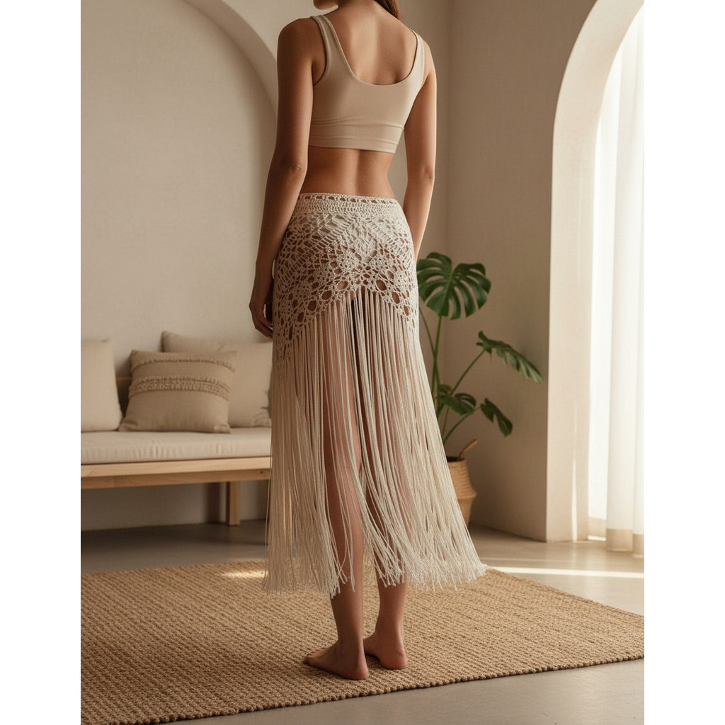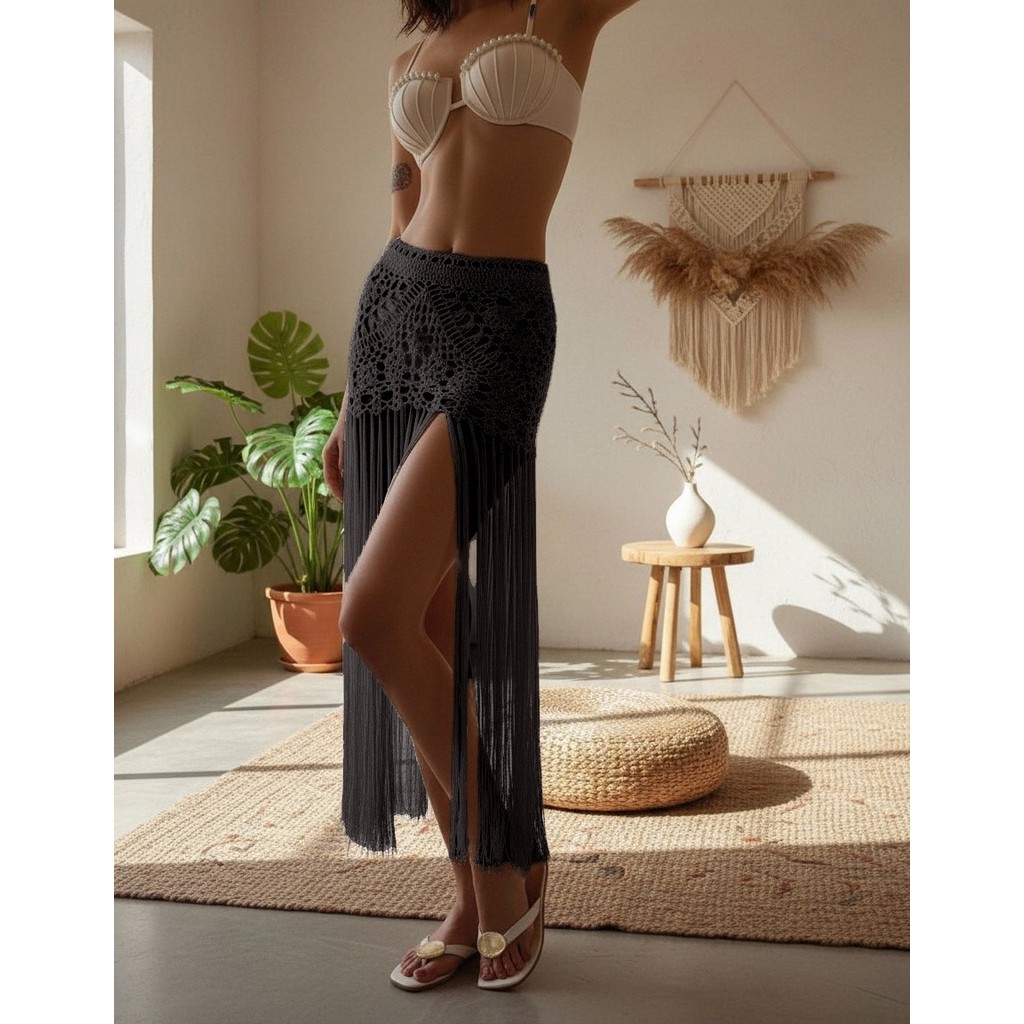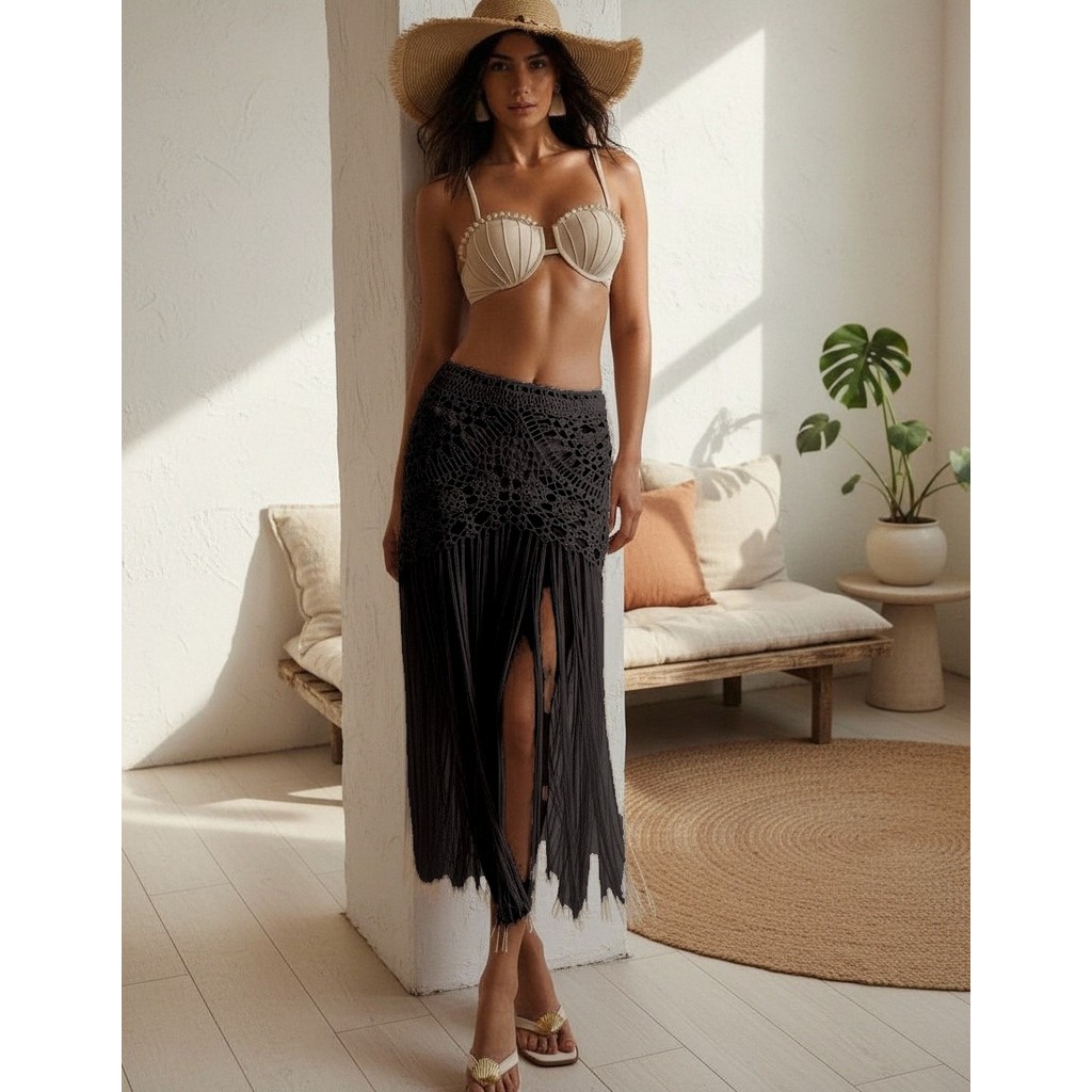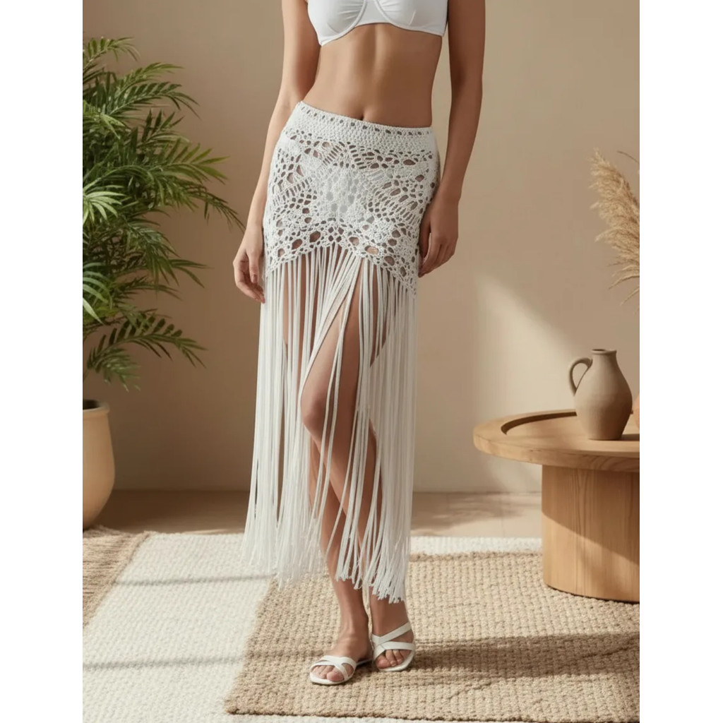 Saia Crochê Franjas Saida De Praia Festival De Música Novo