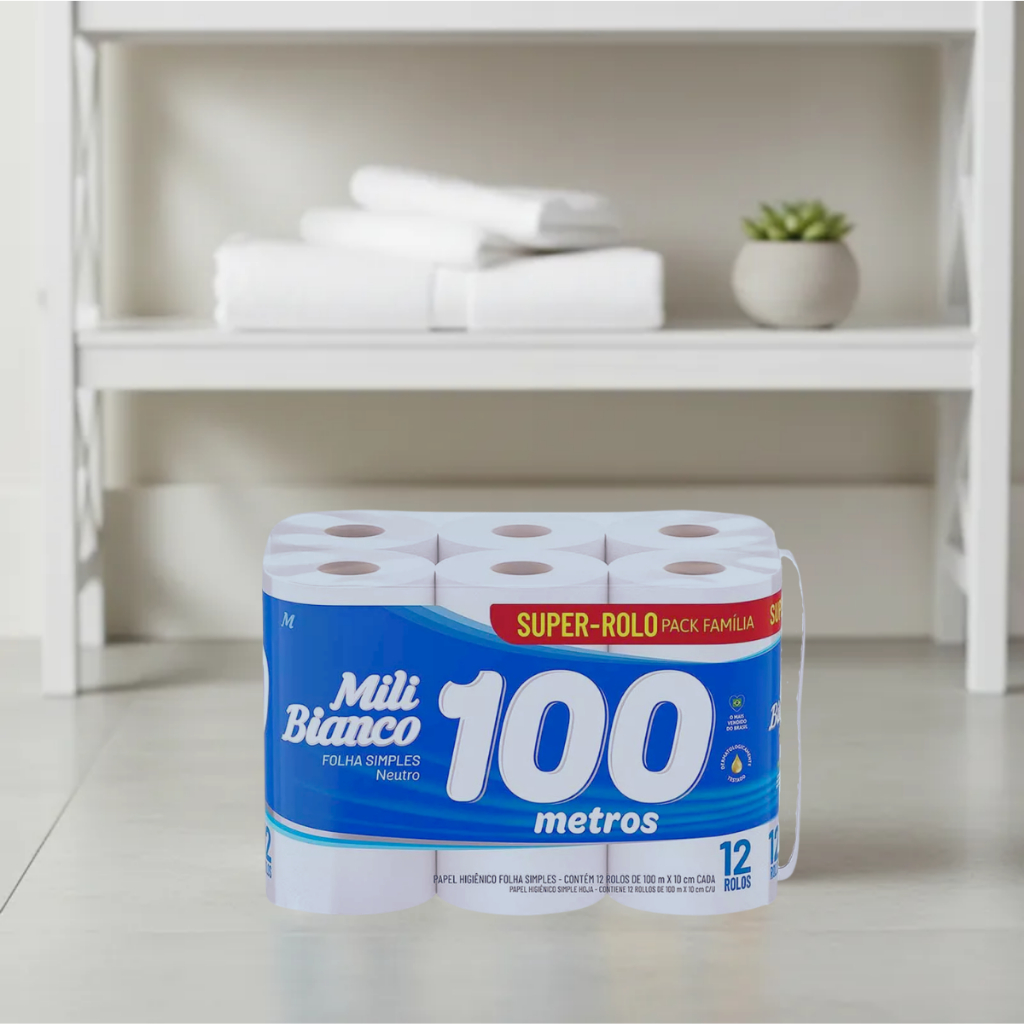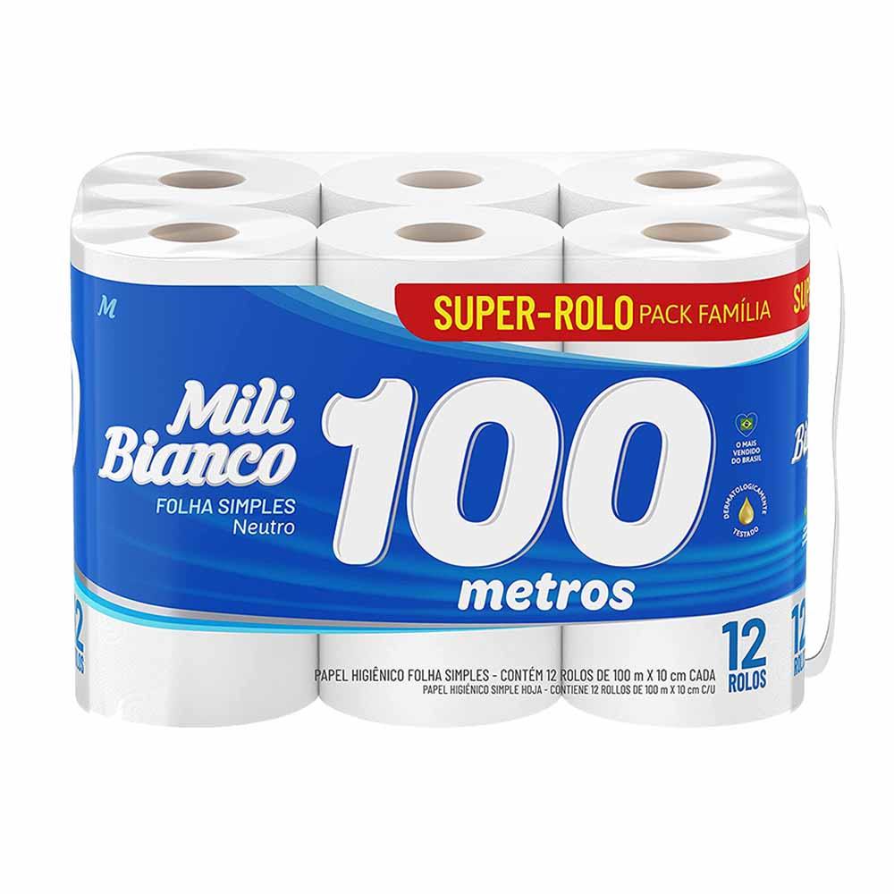 Papel Higiênico Bianco Rolo Com 100 metros Mili 12 Unidades