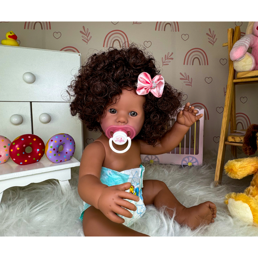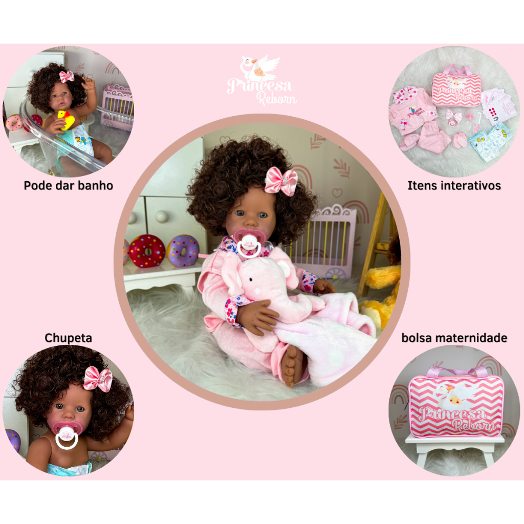 Boneca Bebê Reborn Silicone Negra Pode Dar Banho + Itens Bolsa