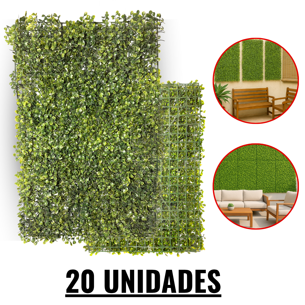 Kit 25, 20, 15 e 10 Unidades Placa de Buchinho Grande 40X60 CM Muro Artificial Verde Buchinho Jardim Vertical Buxinho