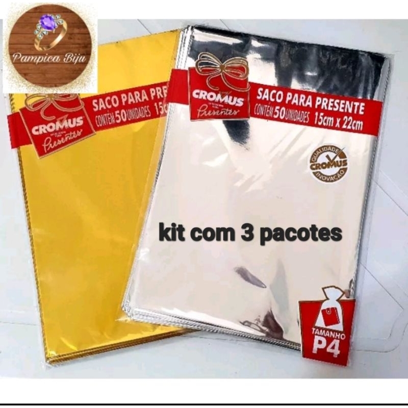 Saco Para Presente 15x22 cm Metalizado 50 Unidades Embalagem Presente