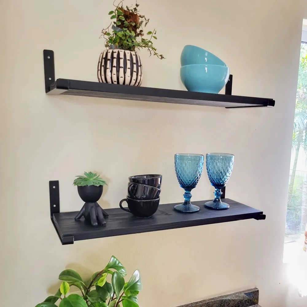 2 Prateleira Industrial Com Mão francesa de ferro invertida Nicho Decoração rustica