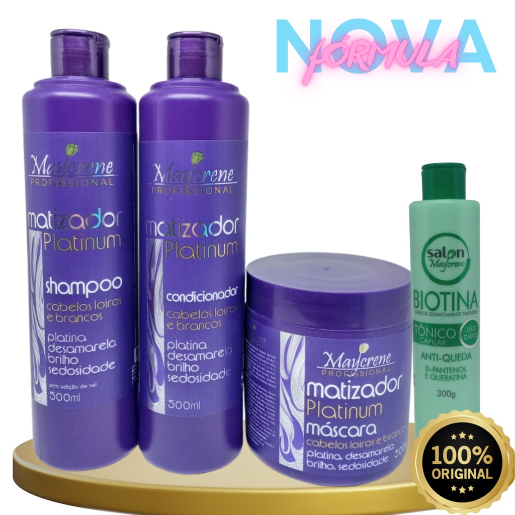 Kit Matizador Platinum Cabelos Loiros Maycrene 500ml Nova Fórmula Robusta e Hidratante
