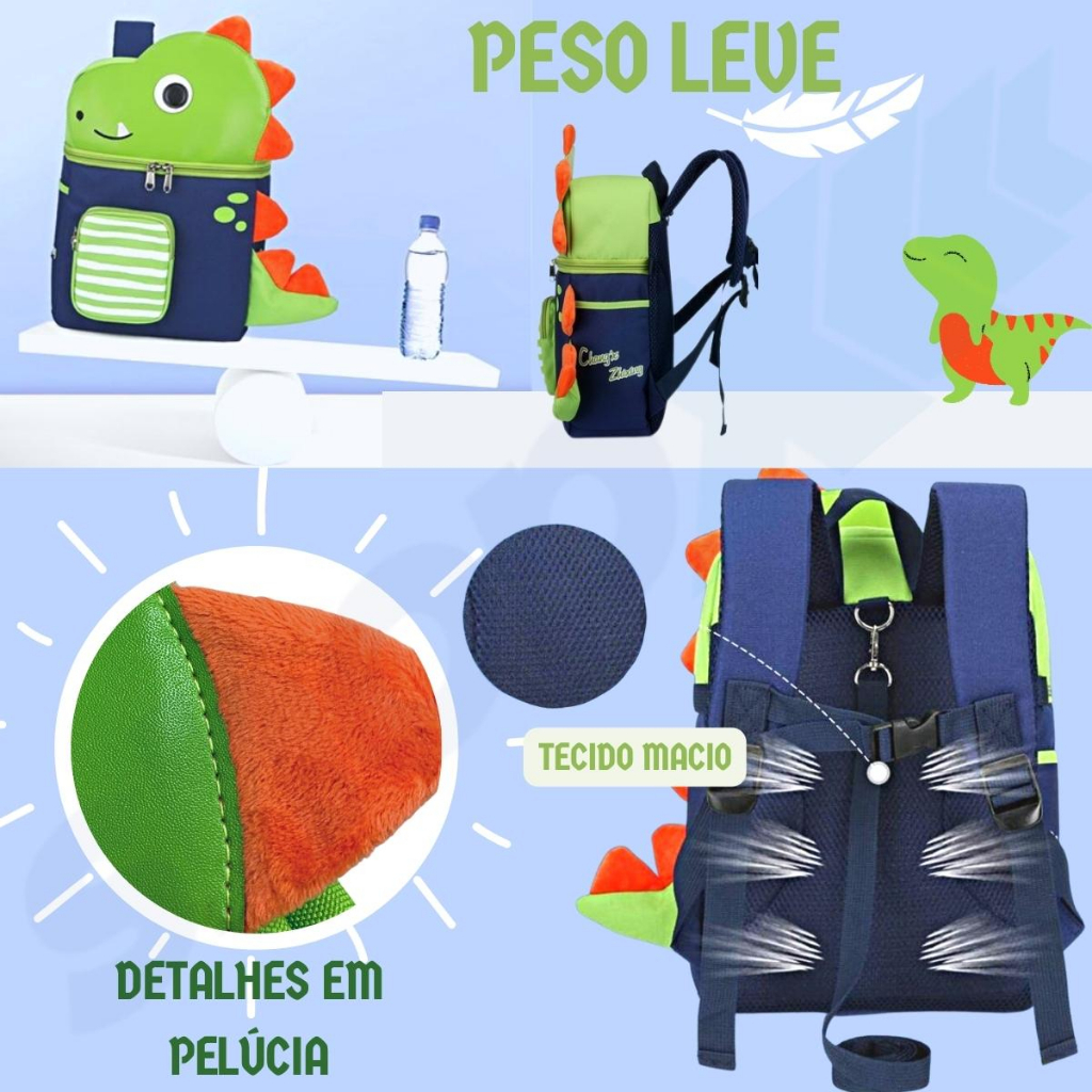 Mochila Infantil Menino Escolar Pets Creche Passeio Bolsa Masculina Criança com Guia