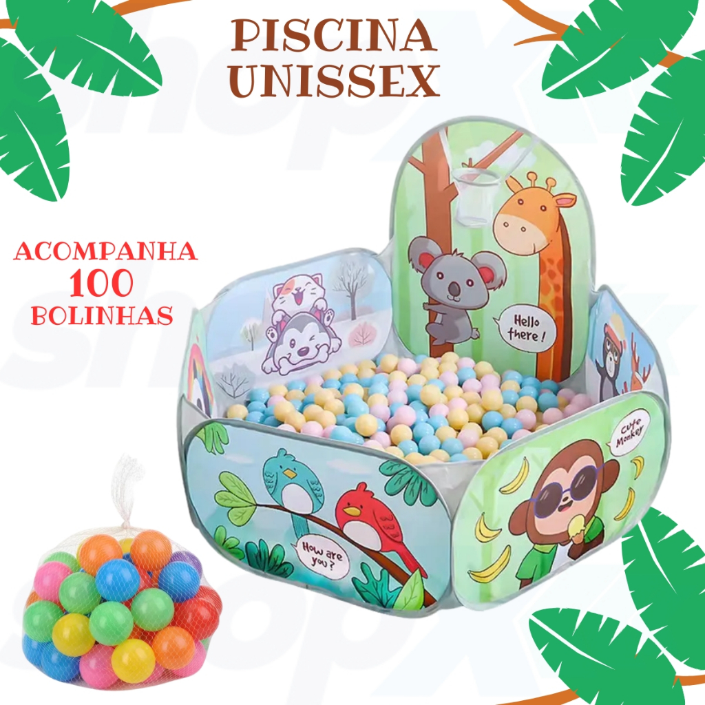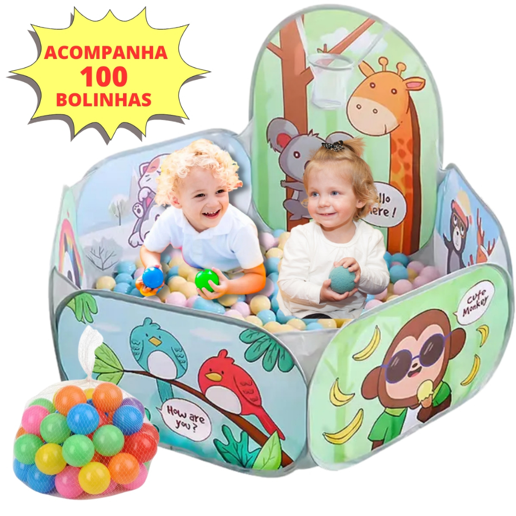 Piscina de Bolinhas Infantil Grande com 100 Bolas Cesto Basquete Bolinha Safari Pets com Inmetro