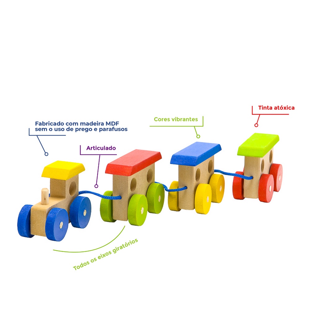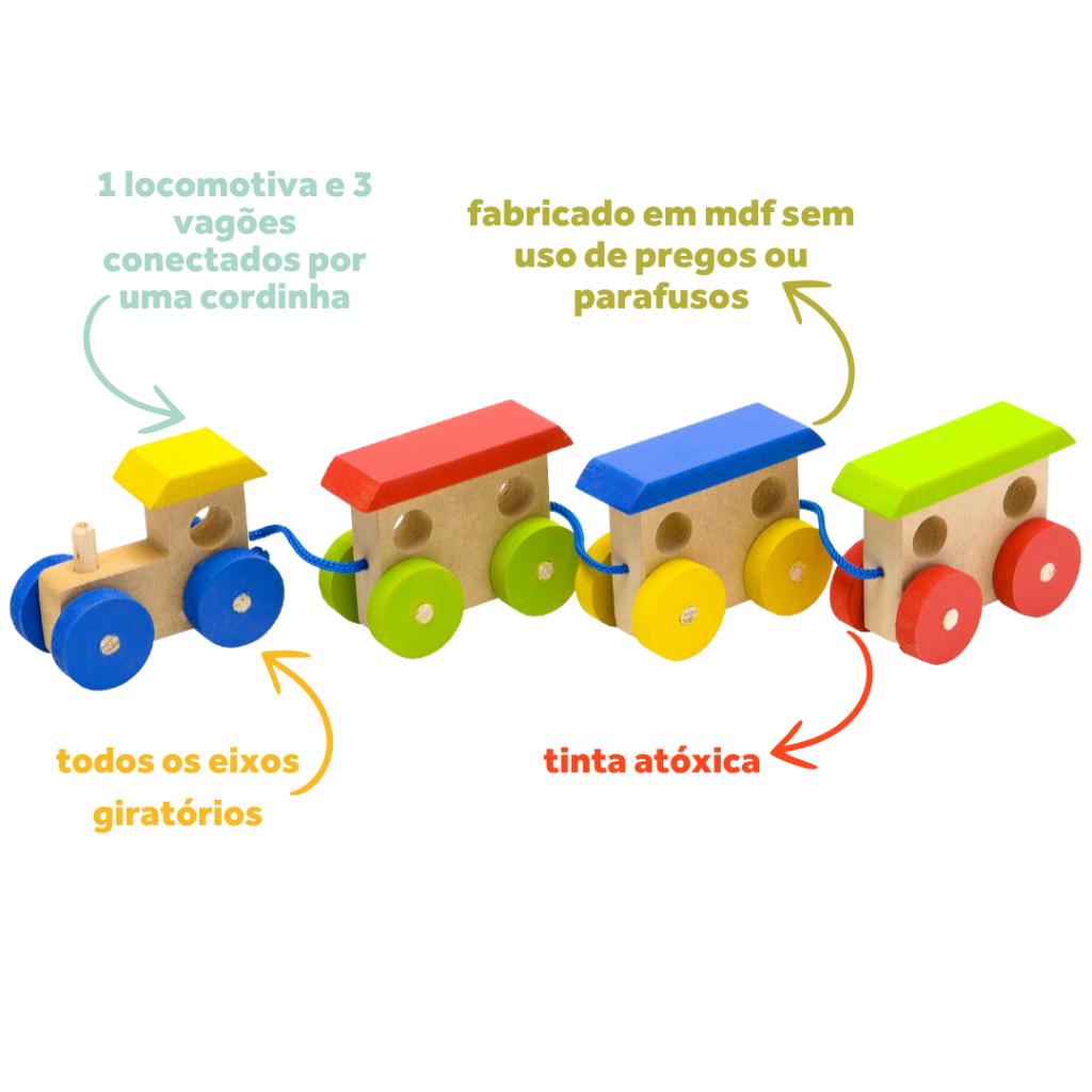 Trenzinho Educativo Madeira Colorido Educativo Pedagógico P