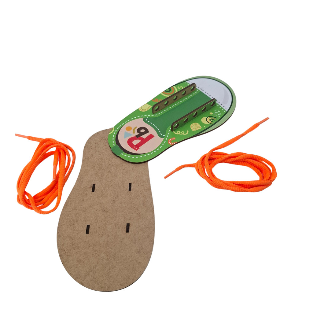 Brinquedo Educativo Alinhavo Par de Tênis Amarrar Cadarço