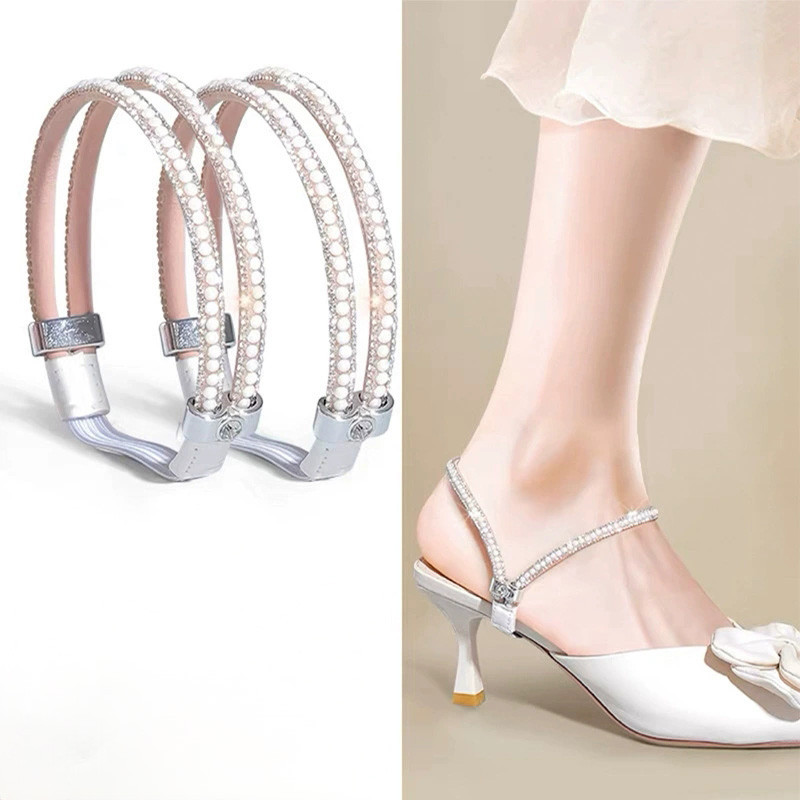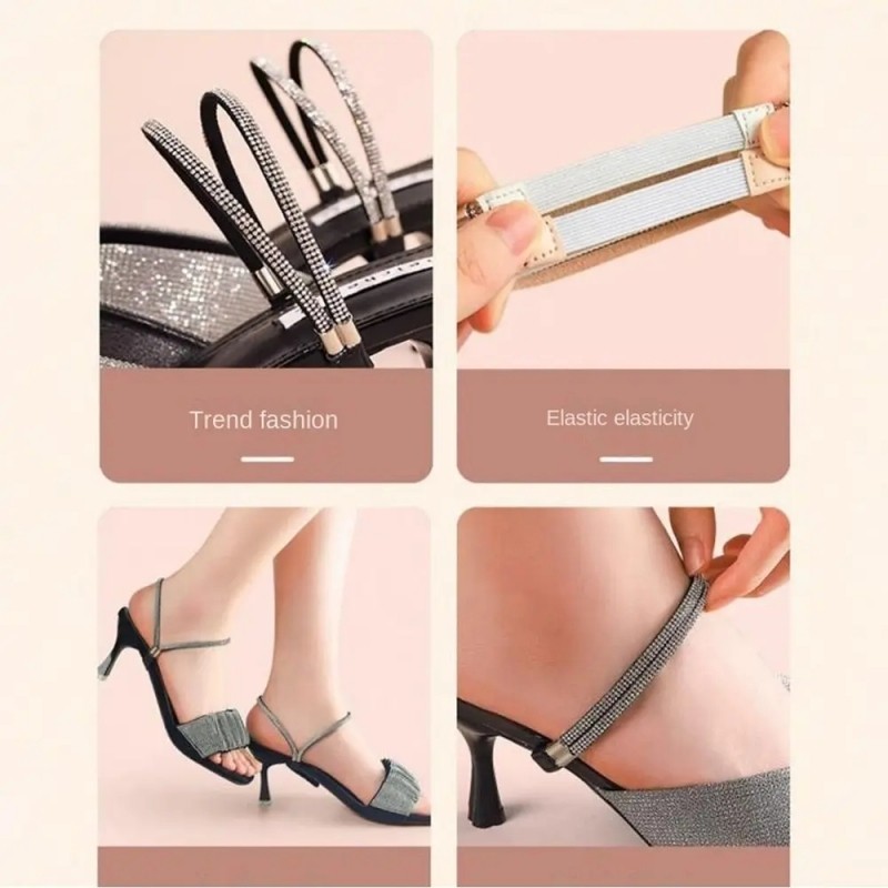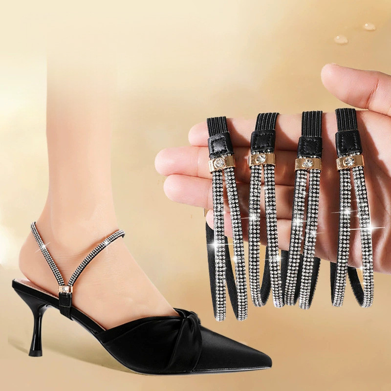1 Par Anti-Queda Calcanhar Strass Cadarço Pacote Salto Alto Elástico Sapato Banda Resistente Ao Desgaste Corda
