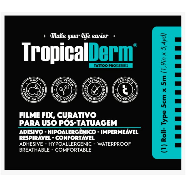TROPICAL DERM PELICULA PROTEÇÃO CUIDADO TATUAGEM AFTER CARE 5CM X 5M