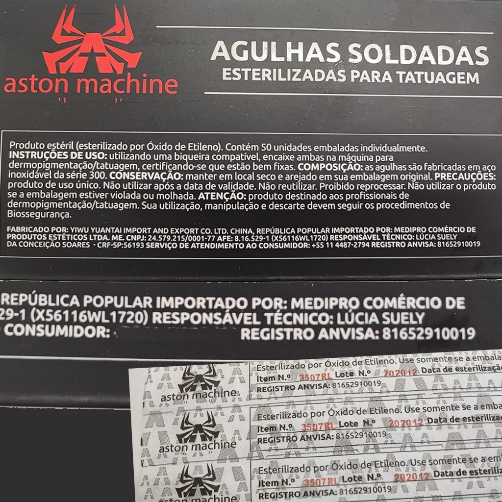 Kit 10 Agulhas Tatuagem Aston Tattoo Traço Rl Rs Magnum Mr Mg Anvisa