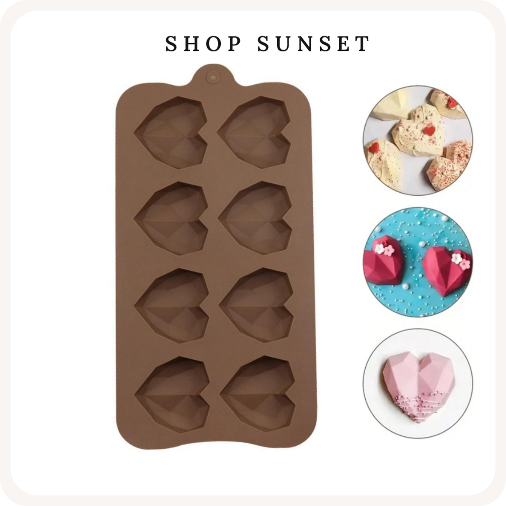 Molde de Silicone 3D Love Coração Diamante 6 Cavidades Resina Sabonete biscuit Mousse Bolo Chocolate Confeitaria