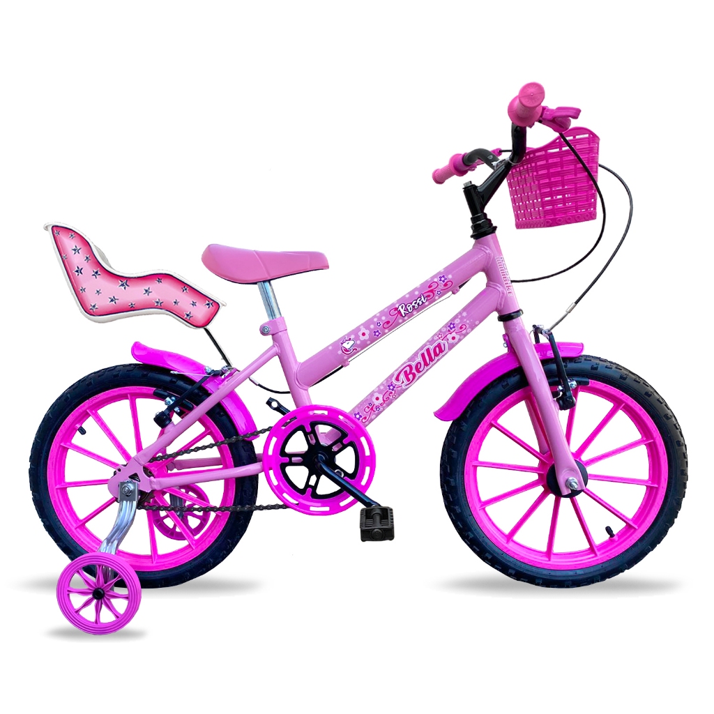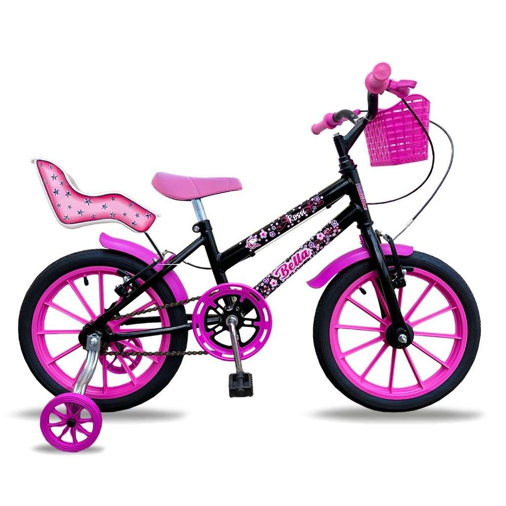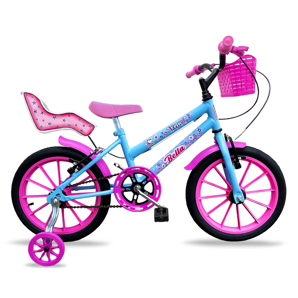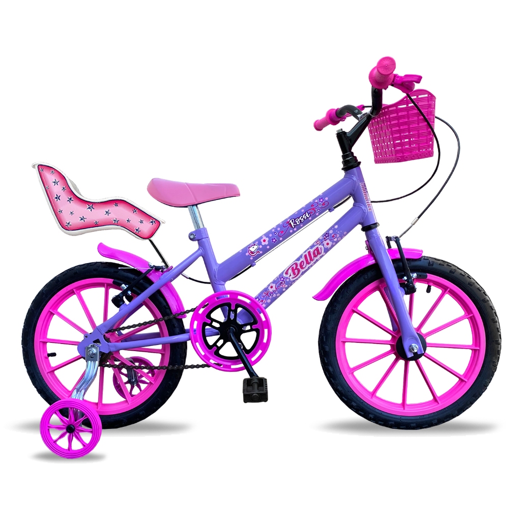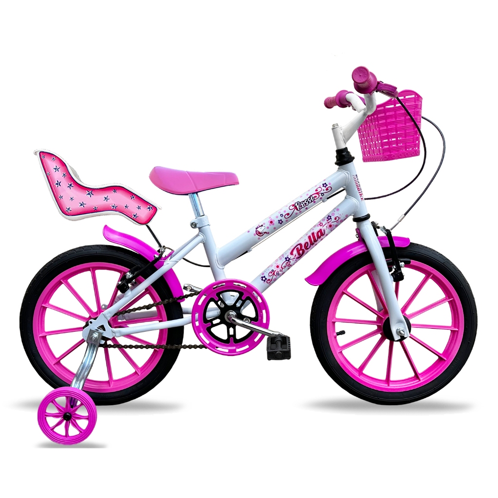 Bicicleta Infantil Feminina aro 16 com Rodinha e Cadeirinha de Boneca Bella Menina