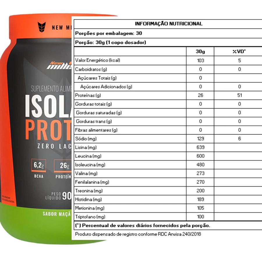 Whey Protein Isolado Zero Lactose Isolate Protein 900g New Millen