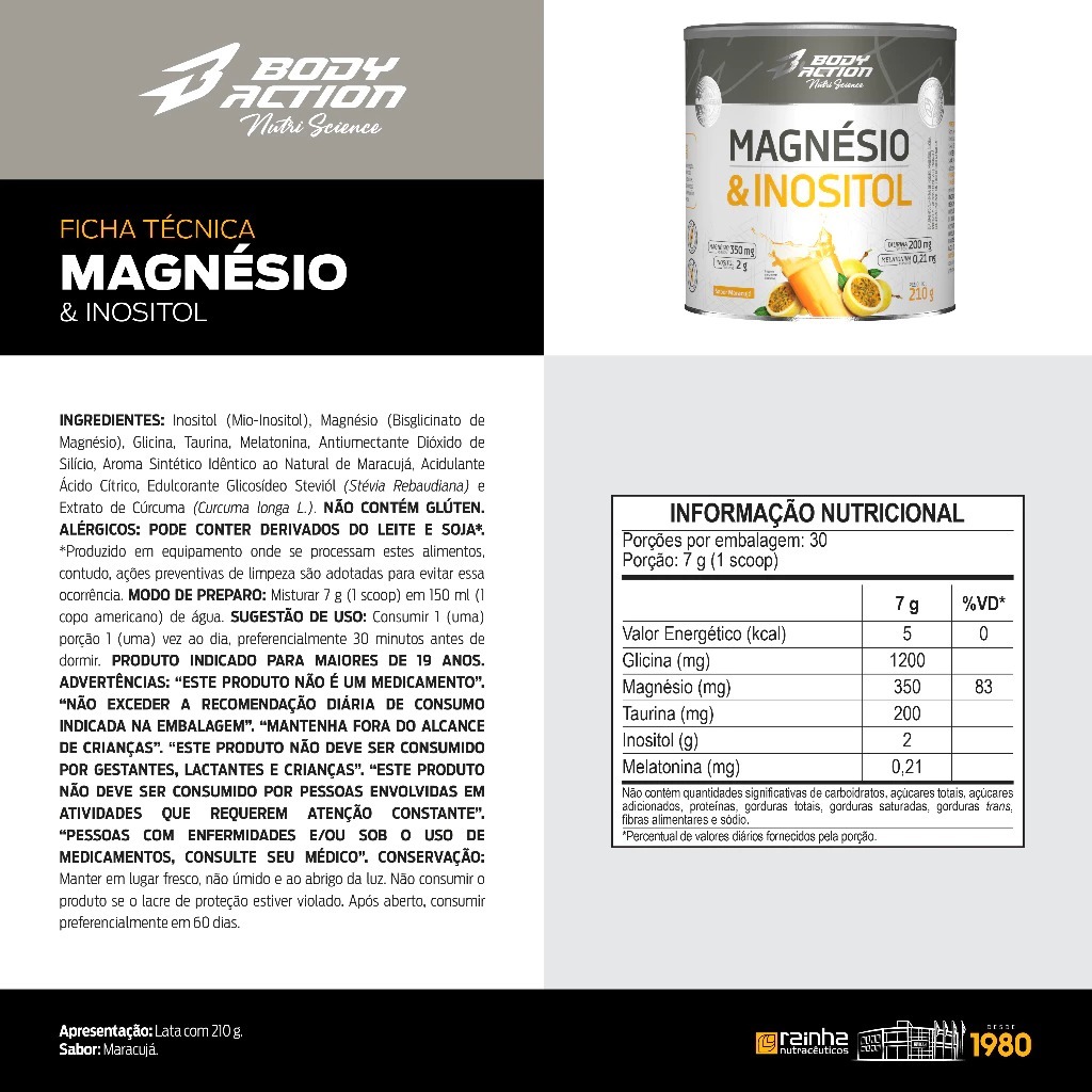 Kit 3x Magnésio e Inositol Taurina Melatonina 210g Bodyaction