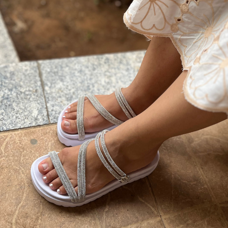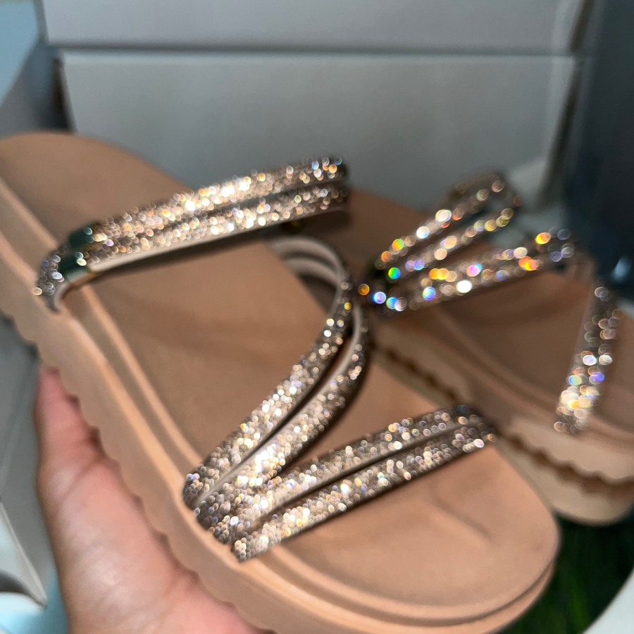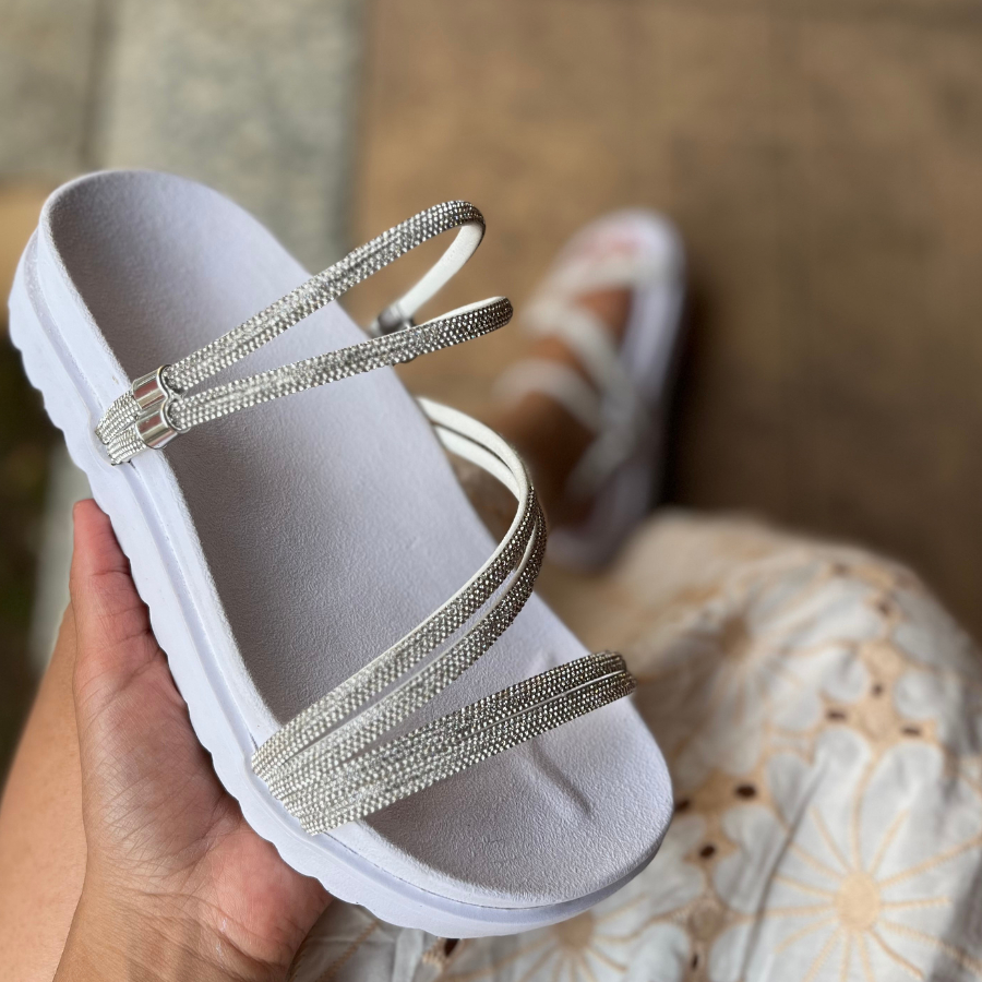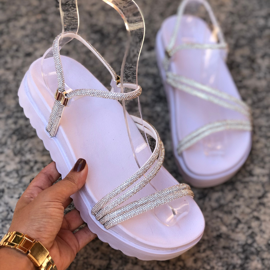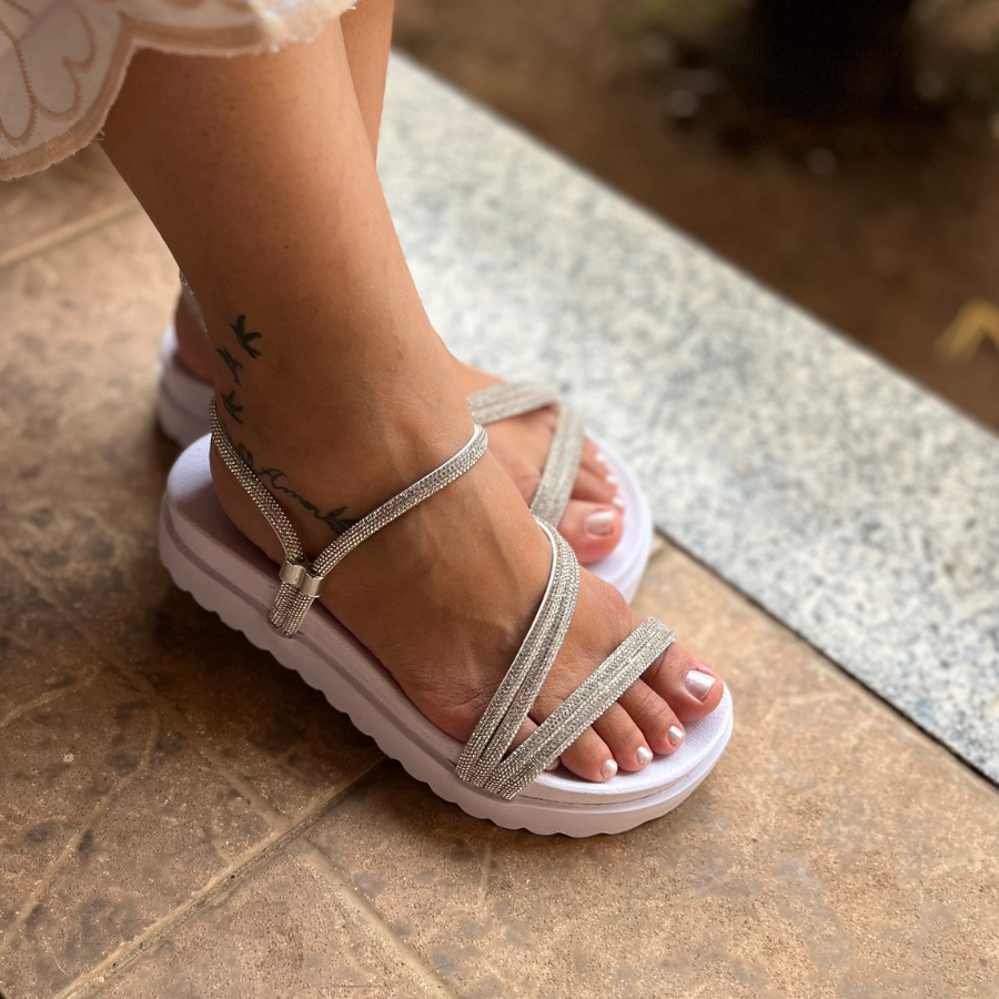 Papete Sandália Feminina Birken Anabela Salto Tratorada Stras Brilhante Branca Furta Cor Preta Festa