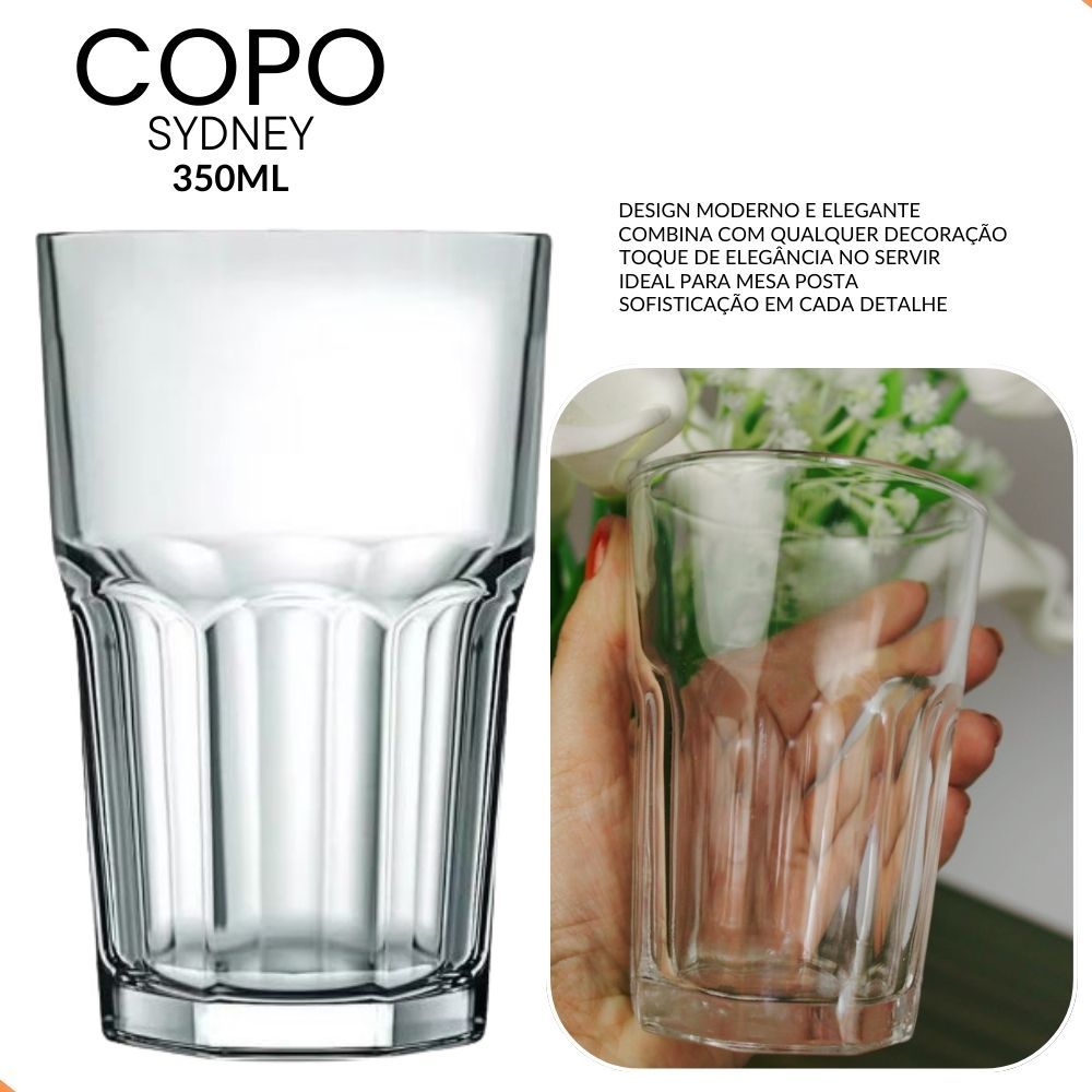 Jogo com 6 Copos de Vidro 350ml – Ideais para Chopp, Whisky, Água, Drinks, Sucos Design Elegante