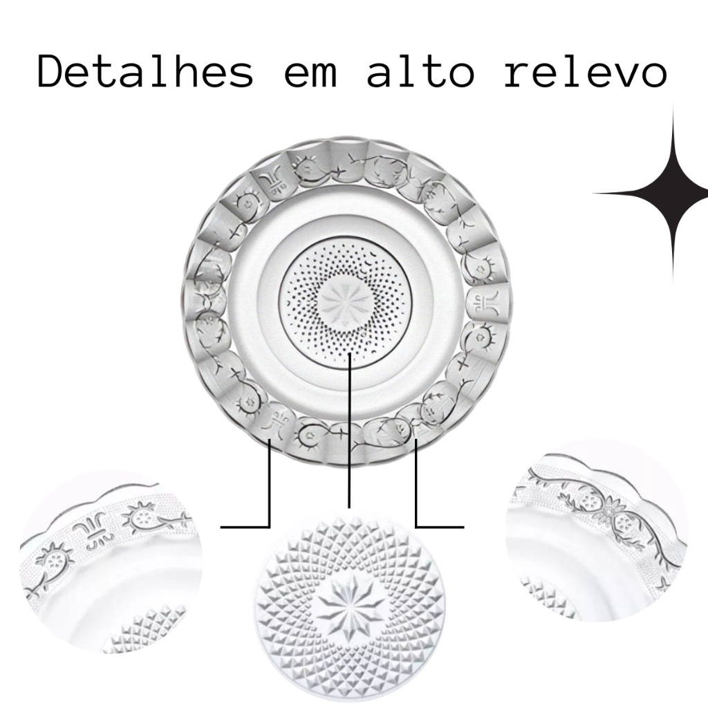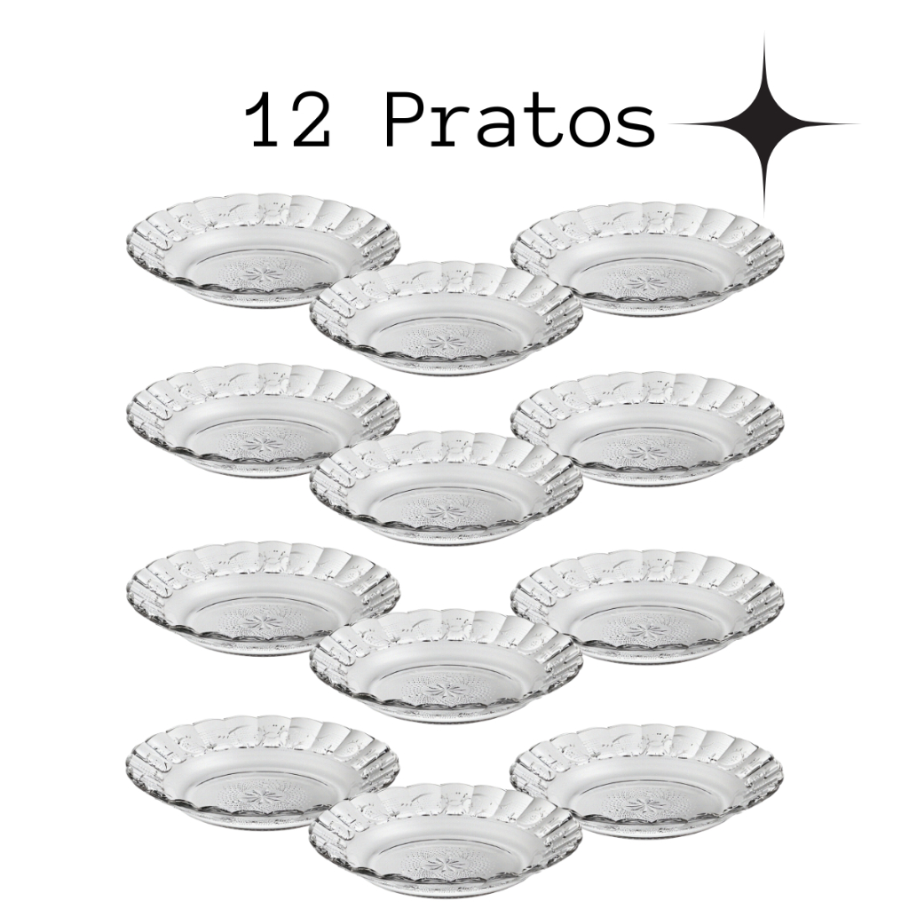 Conjunto com 12 Pratos Fundos Egípcios de Vidro 21,5cm – Design em Alto Relevo, Sofisticado