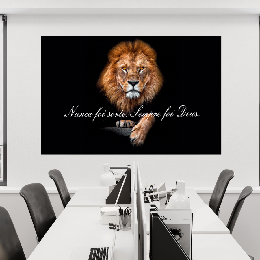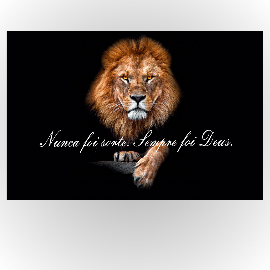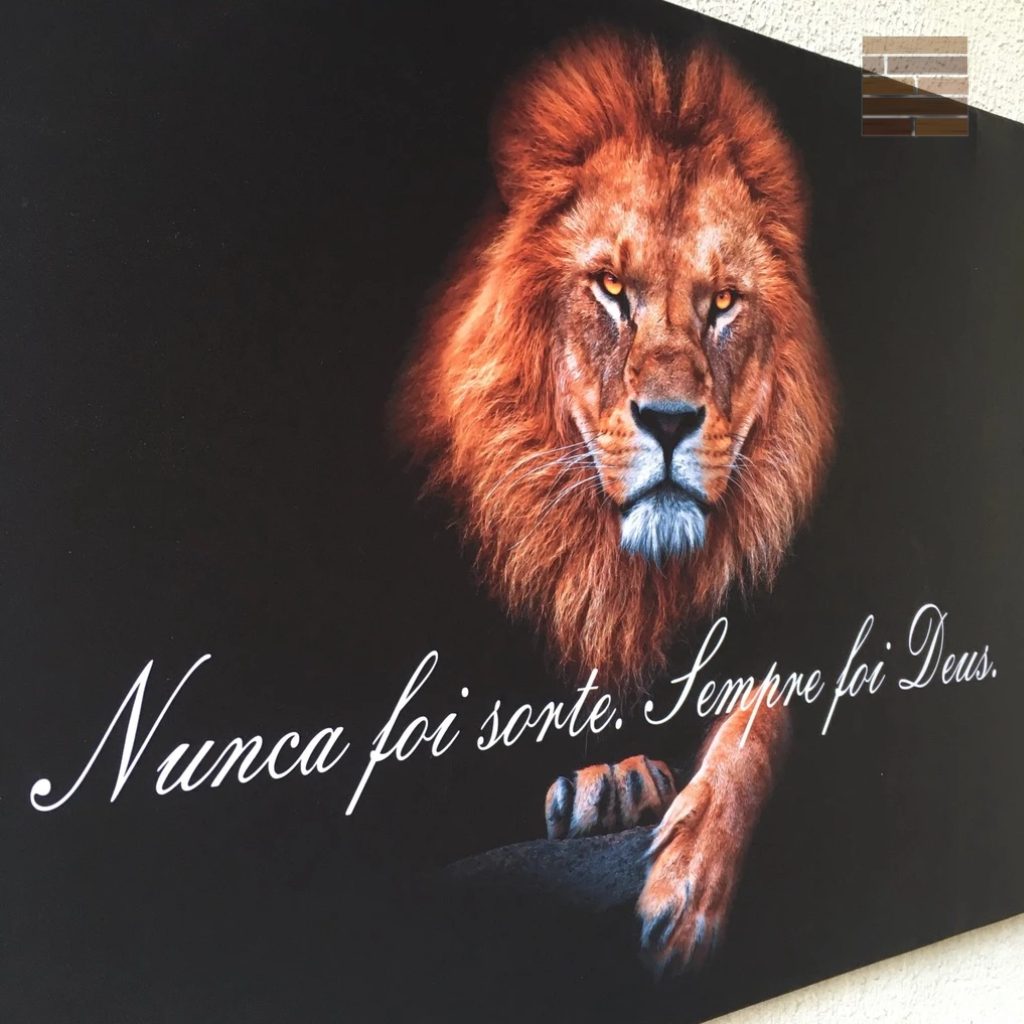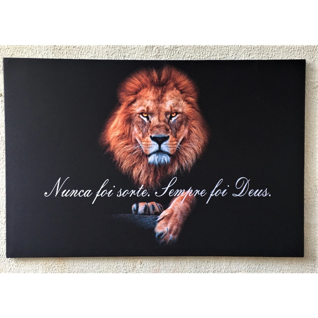 Quadro Decorativo Leão de judah Grande Frase Nunca Foi Sorte Sempre Foi Deus Tela Acetinada