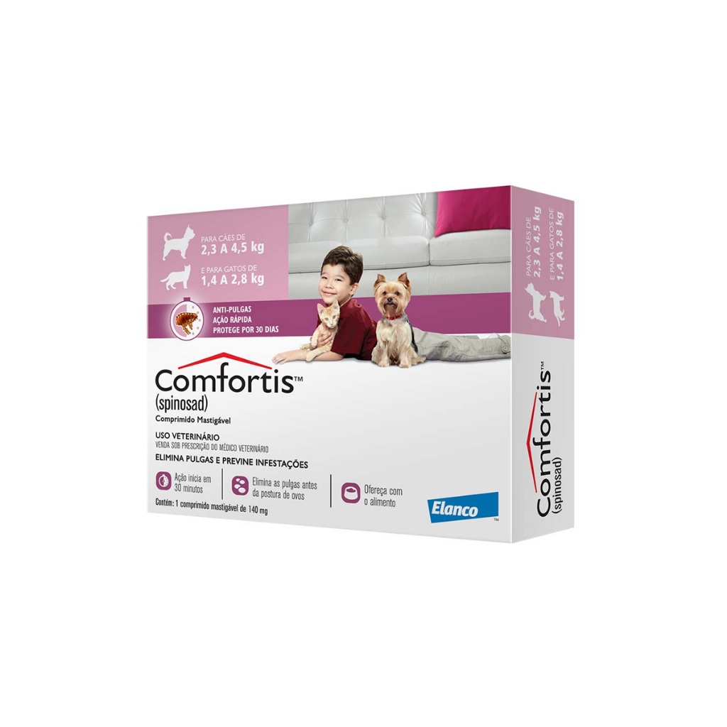 ANTIPULGAS COMFORTIS ELANCO P/ CÃES DE 2,3 A 54 KG GATOS DE 1,4 A 11 KG 1 COMPRIMIDO ORIGINAL