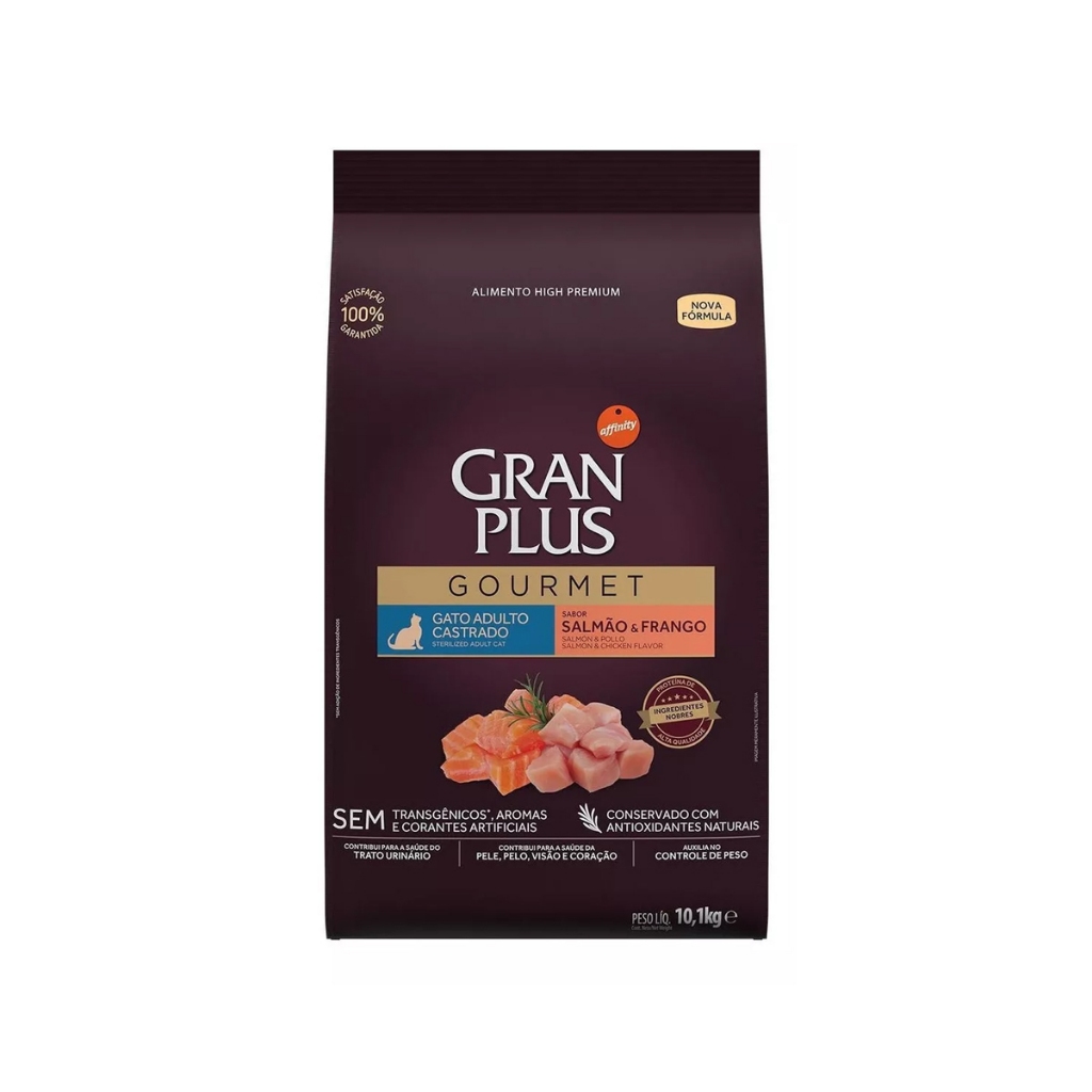 Ração Gourmet Gran Plus Castrados Para Gato Adulto Sabor Salmão E Frango Em Saco De 10.1kg