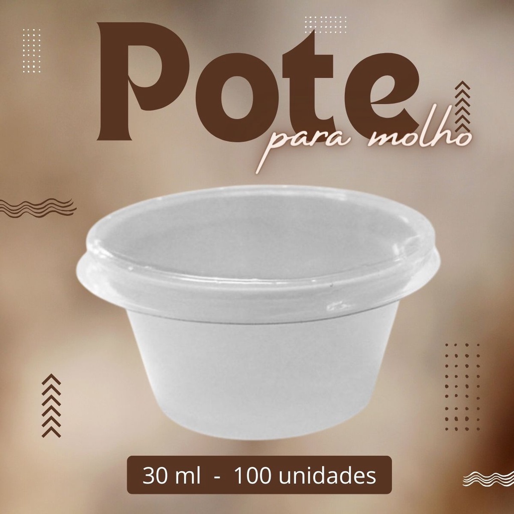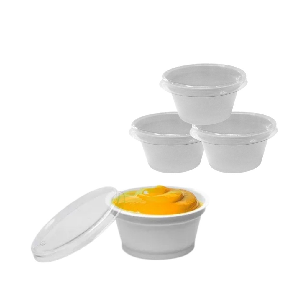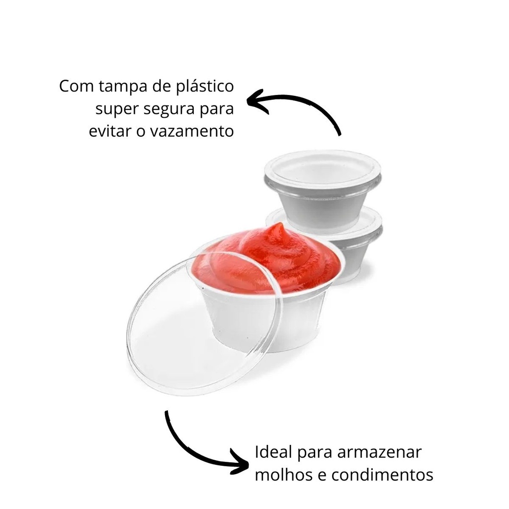 100Un Potinho Molheira Descartável Tampa Restaurante Lanchonete Hamburgueria Maionese Ketchup 30ml