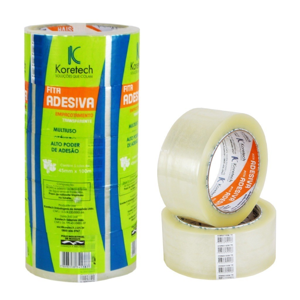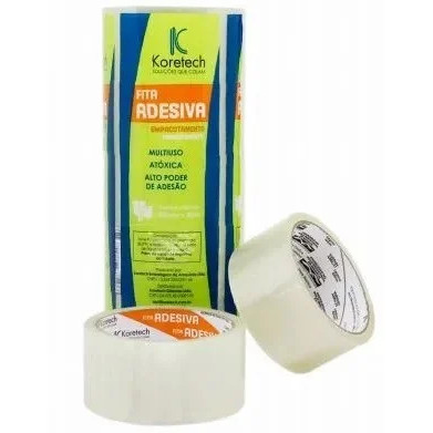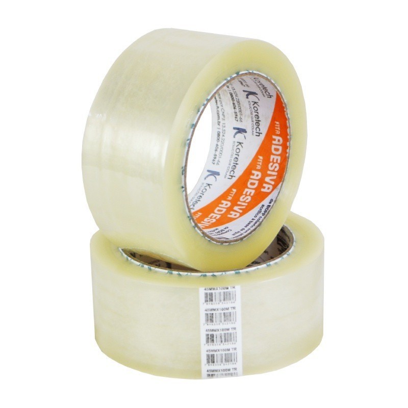 Kit 3 Fita Adesiva Transparente 45x45 Koretech Filme Plastico Colagens Simples Fechamento de Caixas