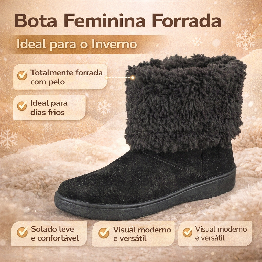 Bota Feminina de Pelo Forrada Inverno