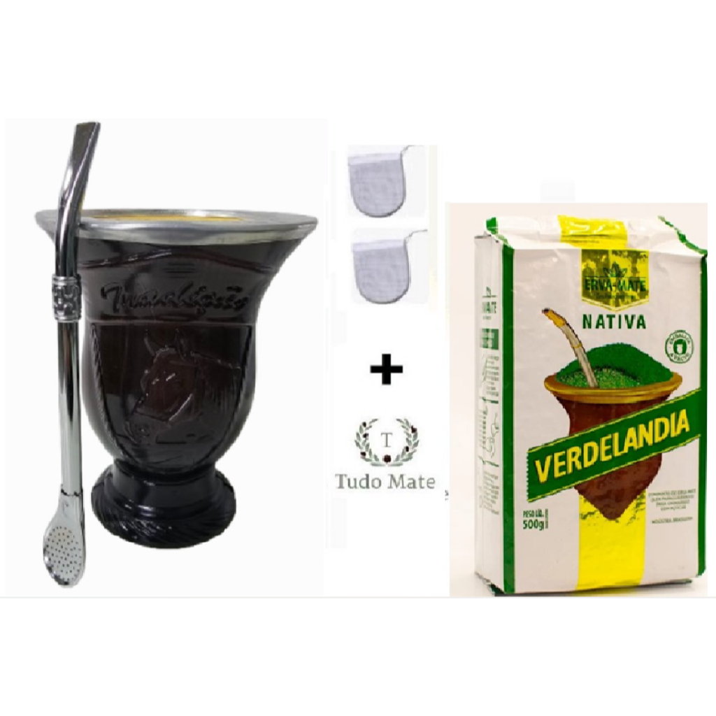 Kit Chimarrão Cuia Porongo Revestido + Bomba + 500 Gramas Erva + 2 Filtros