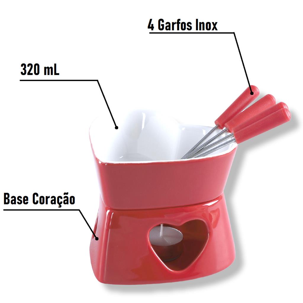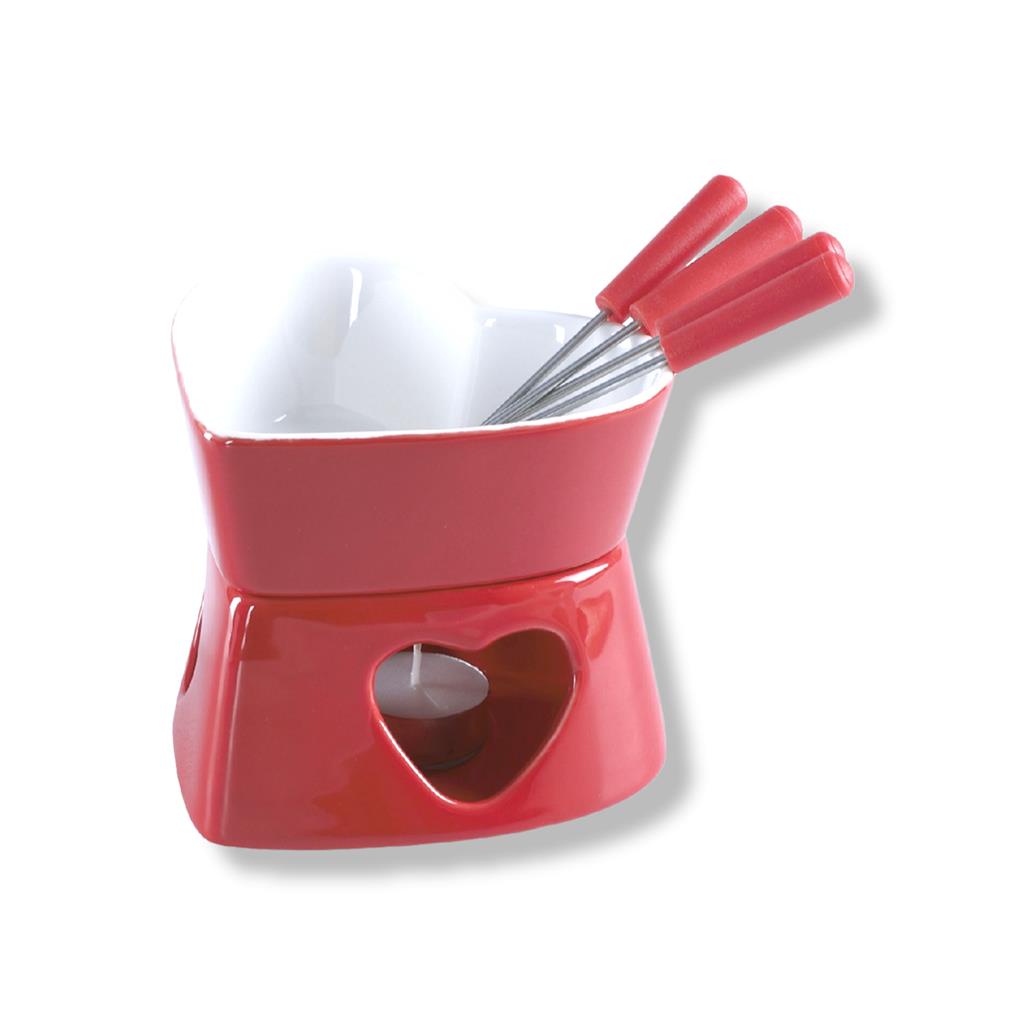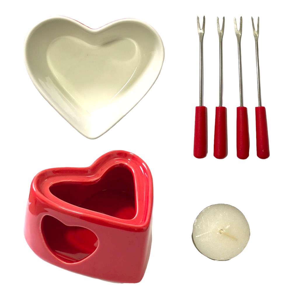 Conjunto De Fondue Em Ceramica Coracao Herstal Vermelho 7Pcs